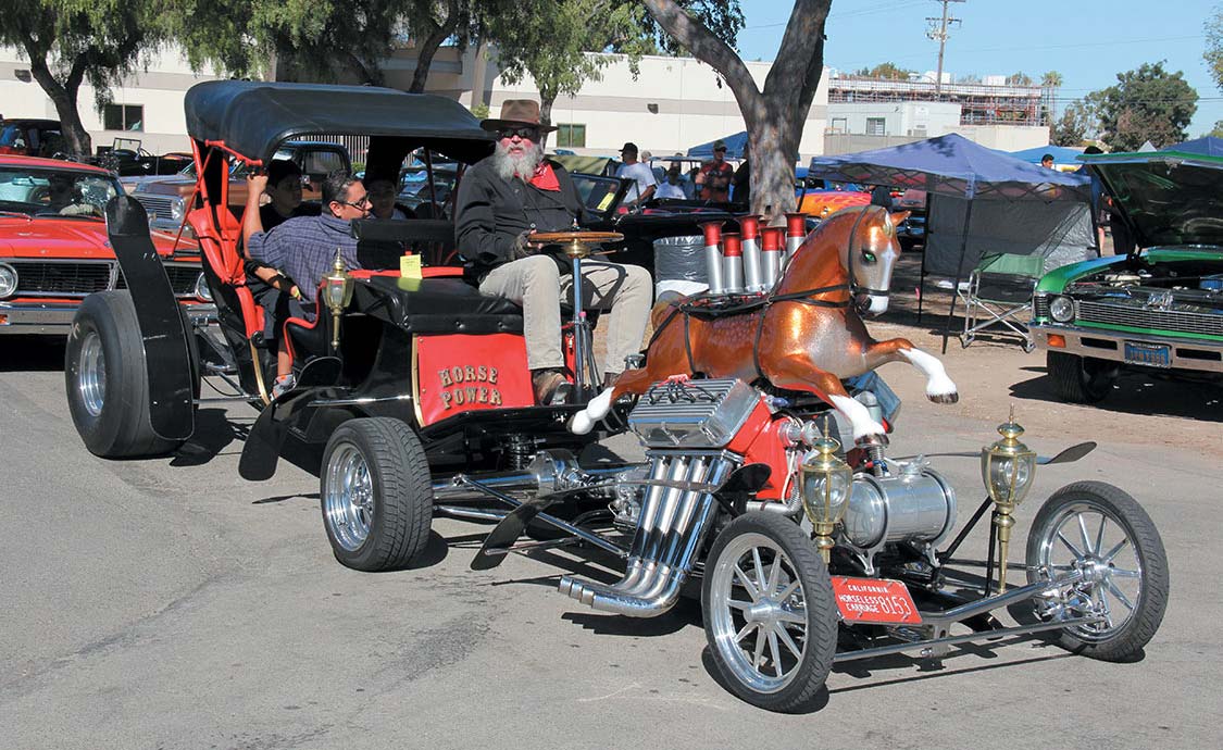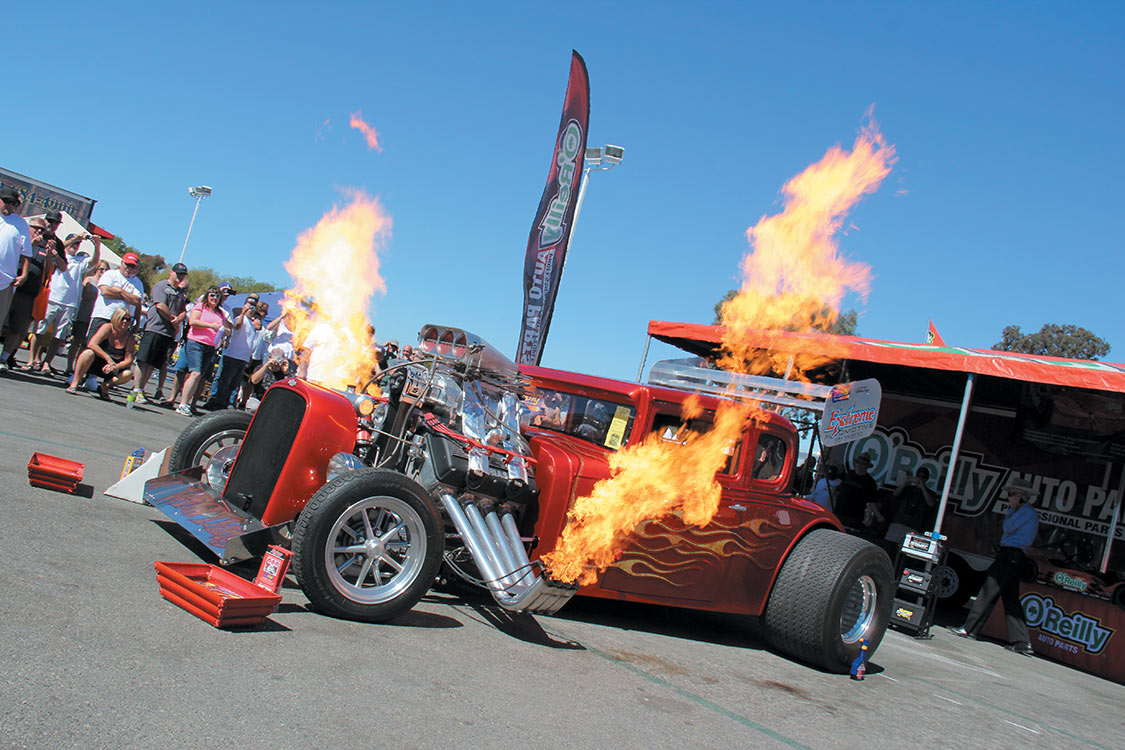 The day’s festivities started off with Casey Simpson singing the national anthem and God Bless America followed by the invocation by Dave McClelland. The official opening with the fire truck cruise featured restored vintage fire trucks as they took part in a lap around the 1.3-mile cruise route. Throughout the day The Answer played ’60s and ’70s rock and roll on the main stage, and Casey Simpson also performed. Inside the Costa Mesa exhibitor building Scale Masters held a model car contest where entrants displayed their incredible miniature-building skills for everyone to admire. Later in the afternoon the traditional cancer survivors’ photo was taken on the main stage. The show closed with the awards ceremony and a drawing for the donated set of Budnik Wheels and Guaranty Chevrolet Complete GM 350-ci engine.