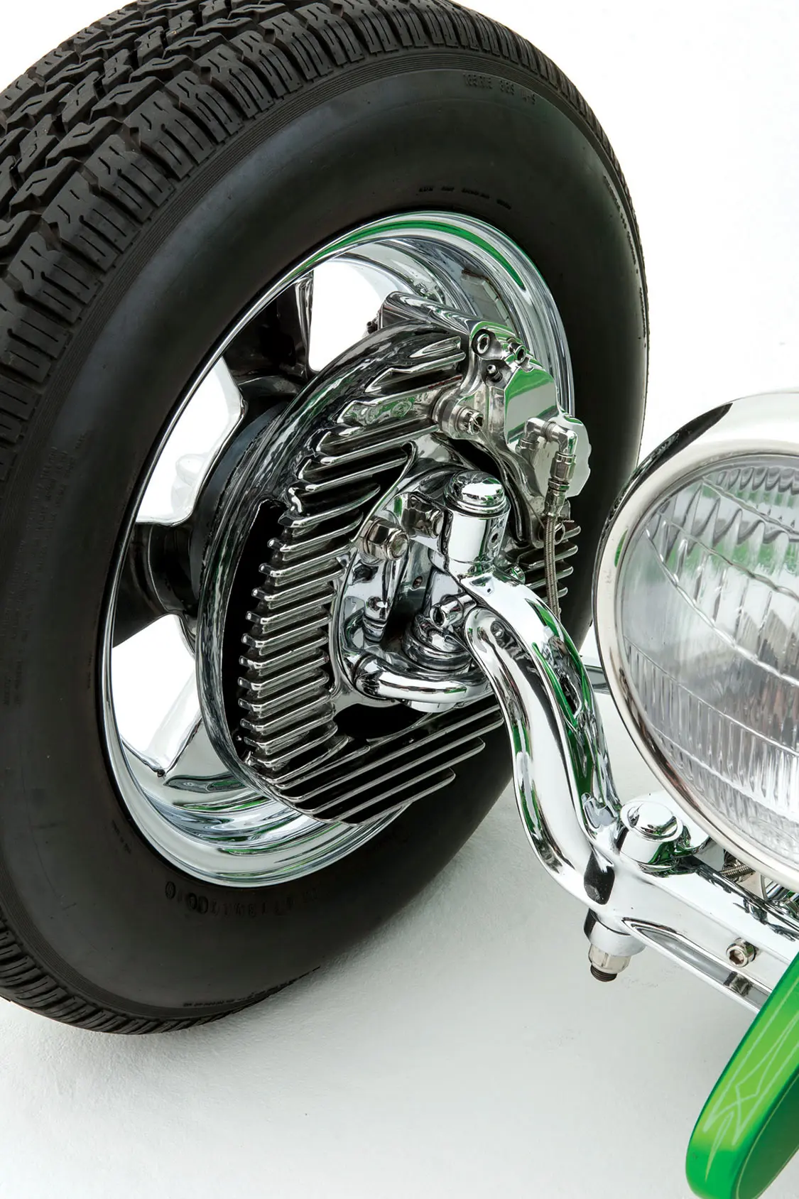 House of Kolor White basecoat, Lime Time pearl, Pagan Gold concentrate, Egyptian Gold pearl and clear sprayed by Jordan Quintal; pinstriping and lettering by Pete “Hot Dog” Finlan.