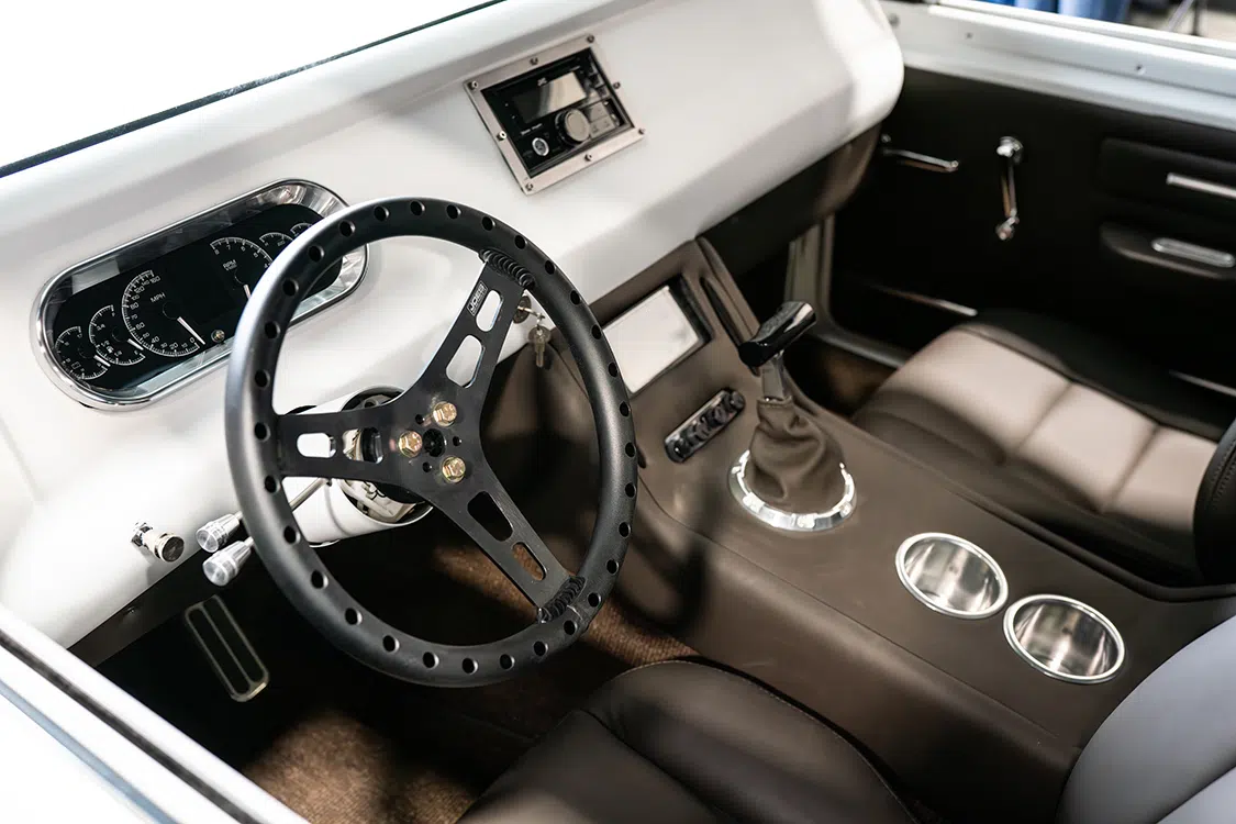 A custom tube chassis built with Ridetech suspension goodies was stuffed underneath, complete with rack-and-pinion steering for precise input. And with a hot-cammed twin turbo LS3 crate engine spinning the rear Lionhart tires by way of a 4L80E automatic, staying in control is absolutely critical. It made sense, then, for Randy to also bolt on beefy 14-inch Wilwood brakes at each corner, right behind the stylish yet very functional 20×8 and 20×12-inch Detroit Steel Wheel Mack wheels.