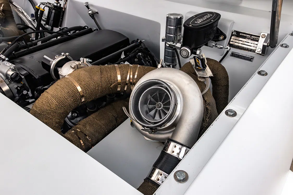 Since Randy planned on debuting his Scout this past Hot Rod Power Tour and actually driving the thing, he needed the interior to be as comfortable and functional as possible. Obviously, that meant that cup holders would be involved, but Randy also needed something to hold the cup holders, so he fabricated a custom center console in addition to a set of door panels, a custom dash, and under-dash panels to finish off the majority of the interior transformation, which was completed with upholstery by Innovation Custom Interiors. And when Randy wouldn’t be listening to the turbos spool up, he’d have the JVC head unit backed by Kicker CS speakers to help the miles melt away.
