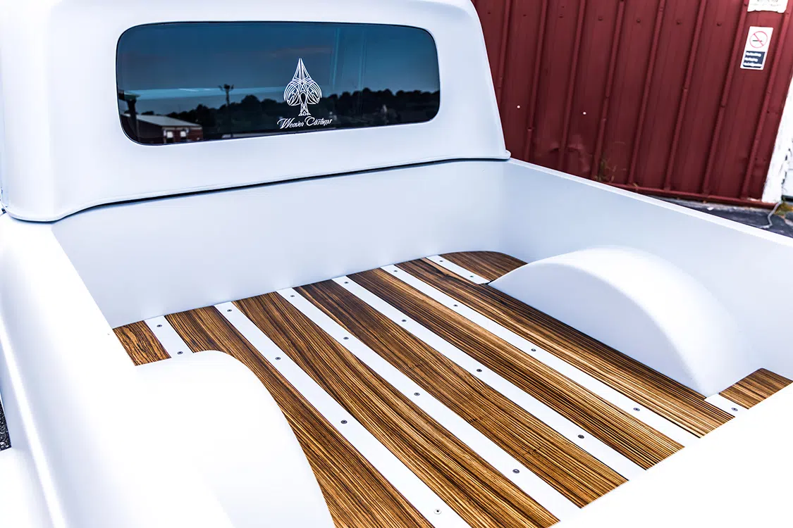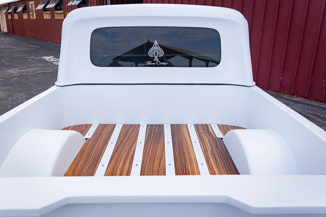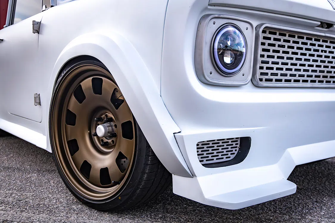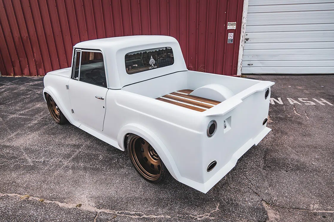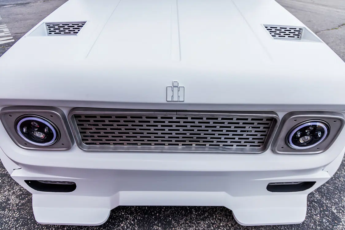When Randy decided to reimagine his own ’69 Scout 800, he really took that quality and performance part to heart, incorporating his own interpretation of what those things meant in the 21st century. Completely restyled from front to back, Randy’s Scout features custom bodywork on every panel, including 2-inch widebody flares, vented hood, and a cut-down body to turn it into a full-time pickup, finished off in GM Arctic White.