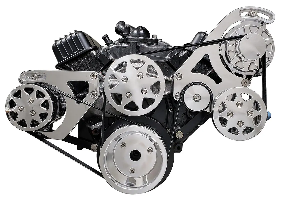 The All American Billet Serpentine Conversion Kit features precision-machined components made from high-quality billet aluminum. Its sleek design and polished finish add a touch of elegance to the engine bay. Moreover, the kit includes all the necessary brackets, pulleys, tensioners, and hardware, ensuring a straightforward installation process. With its A/C configuration, you can enjoy the comfort of air conditioning while cruising down the road.
