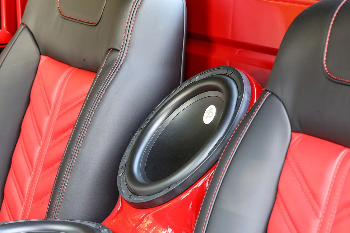 • Custom center console with three 10-inch Audio Dynamics subwoofers