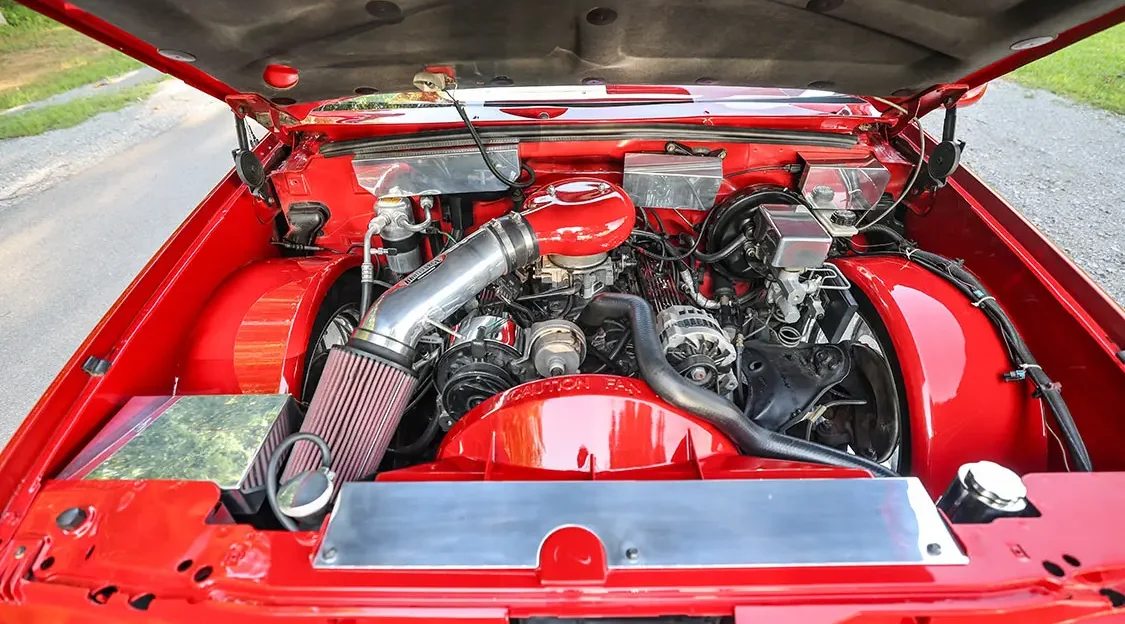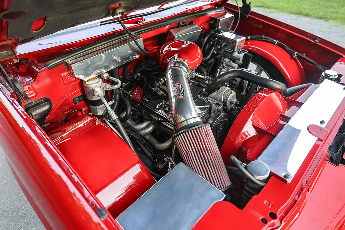 The original 350 engine was set up to maintain reliability, with only a few bolt-ons added for a bit more power, as well as plenty of dress-up accessories. An Airaid air intake kit and throttle body spacer were easy and effective mods, as were the Flowtech headers and Flowmaster exhaust. Squeezing every last ounce of power out of the power package is a SuperChips reflash that has more than earned its keep over its decades of service, and is especially effective given that the engine is backed by the factory Muncie SM465 5-speed manual transmission.