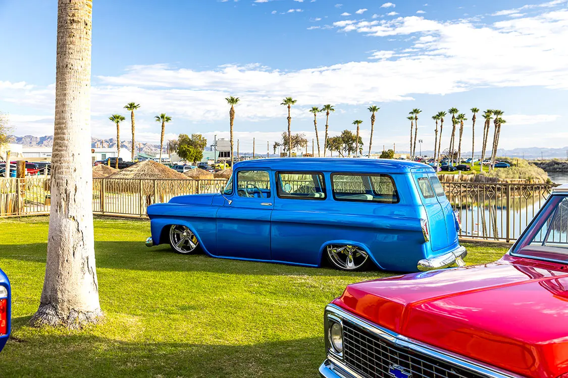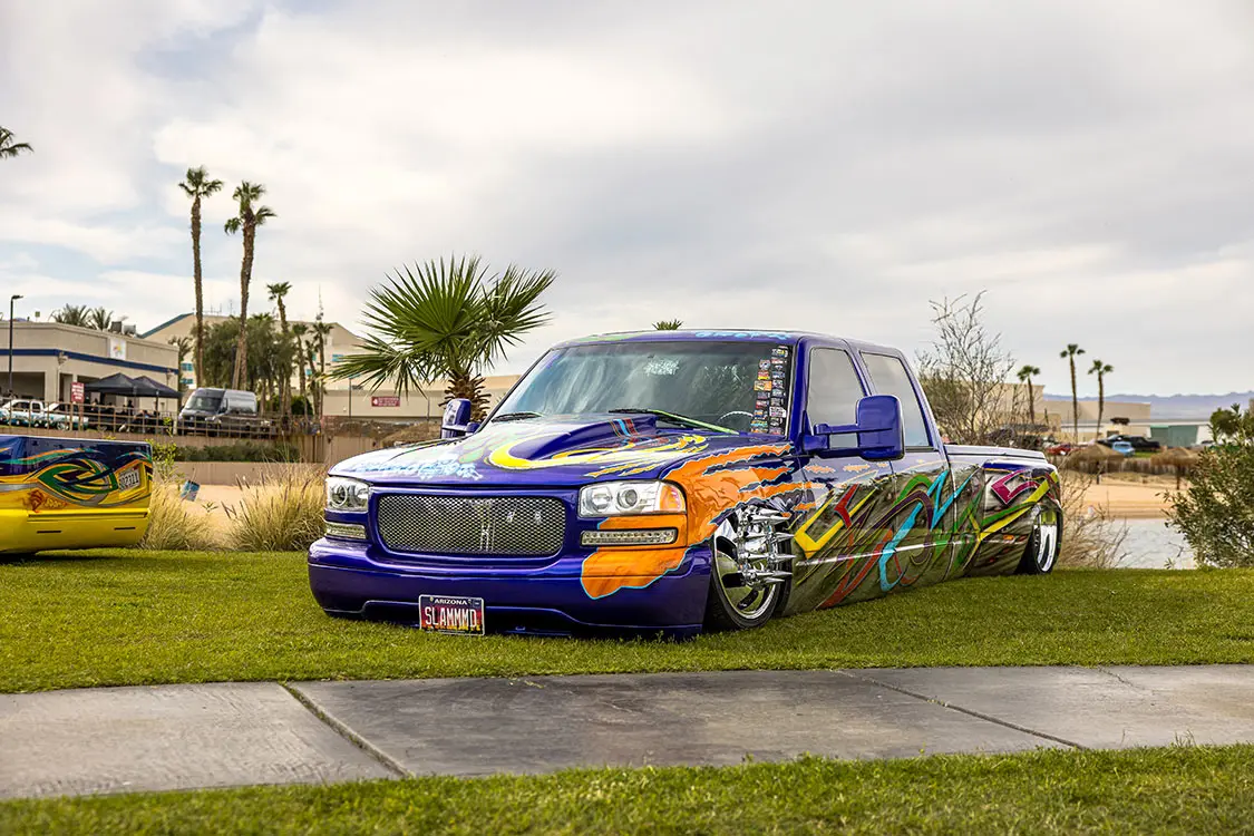 The AVI boasts a huge grassy area right on the Colorado River where only painted vehicles are permitted to park. The club does this because they want people to have something to work toward. We saw many debuts at the show that had not yet been on the internet—what a treat! The asphalt area was not to be dismissed as there were some top-notch rides out there, as well as the vendors.