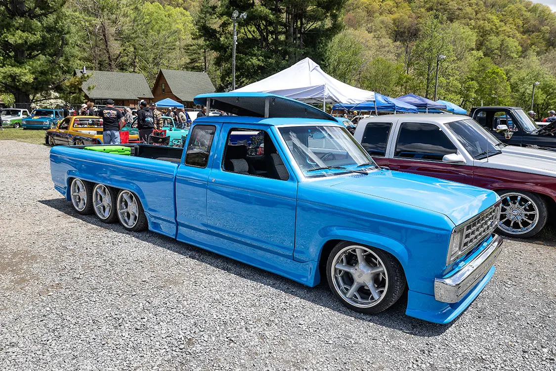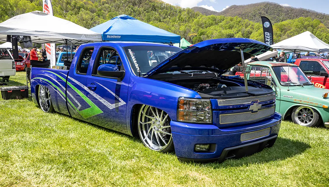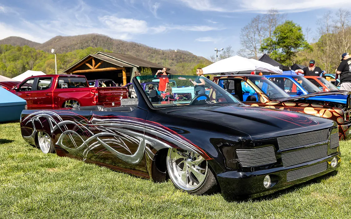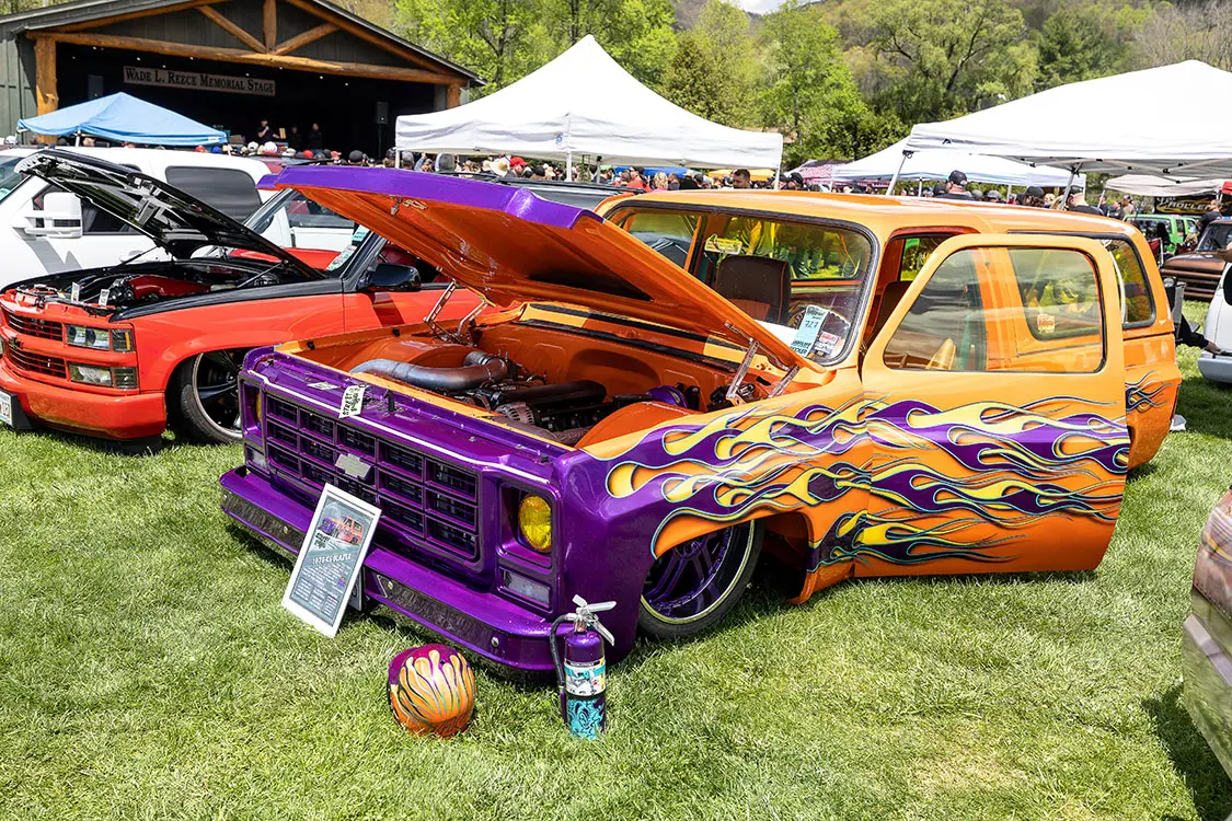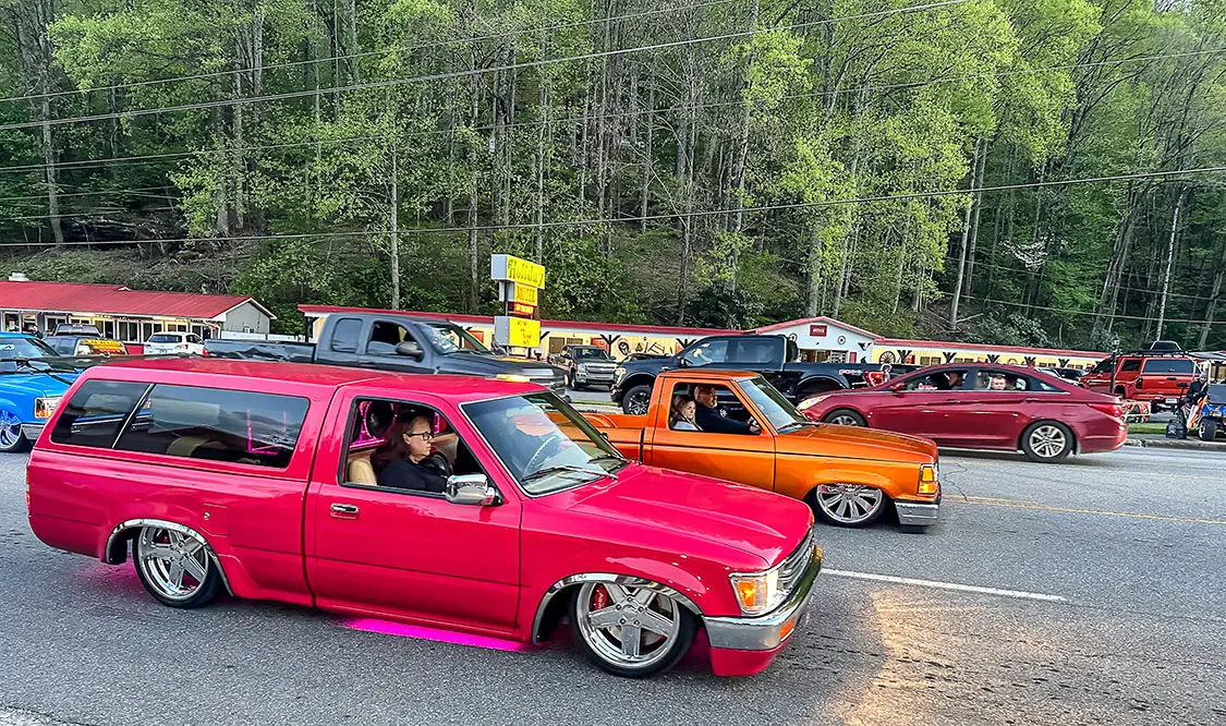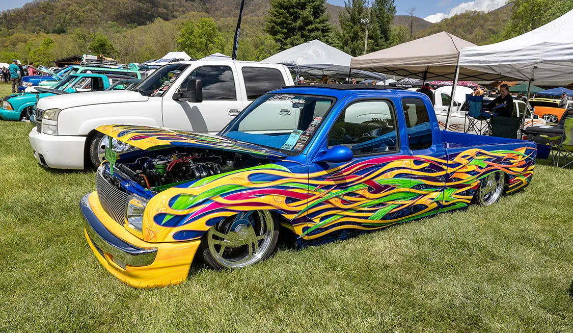Speaking of cruising, that is something that makes this event stand out against other shows around the country. It’s held in the small town of Maggie Valley in the mountains of North Carolina where the entire town supports cruising and people enjoying their town. After show hours, the road through town is lined on both sides with chairs packed with people who watch the custom trucks cruise up and down the road like we did back in the day. You could cruise or even drag back and forth for hours and as long as you didn’t do burn-outs or speed. The town lets people enjoy what the trucks were built to do—look good driving.
