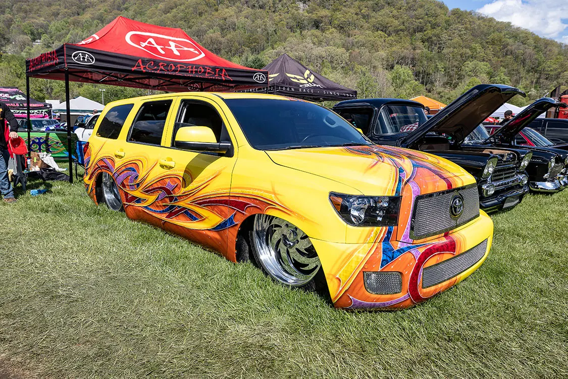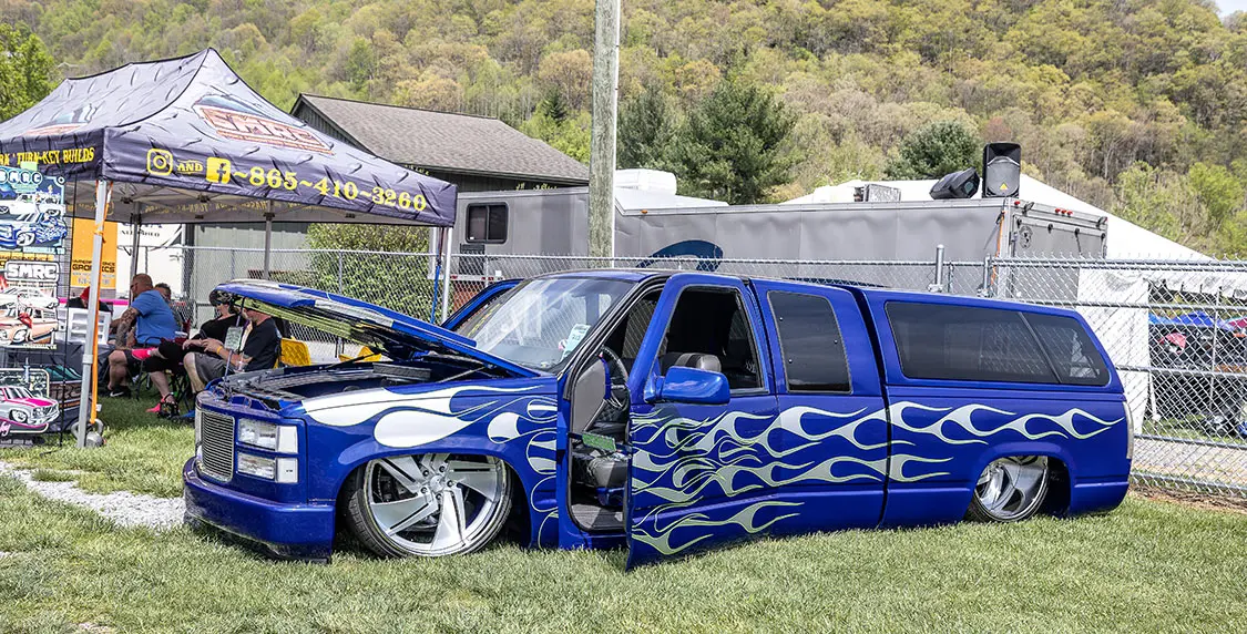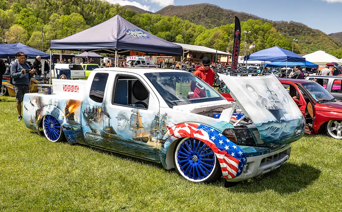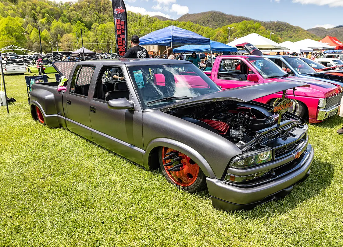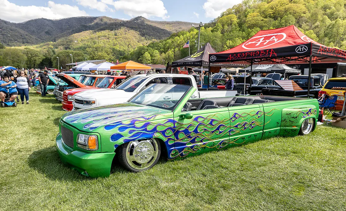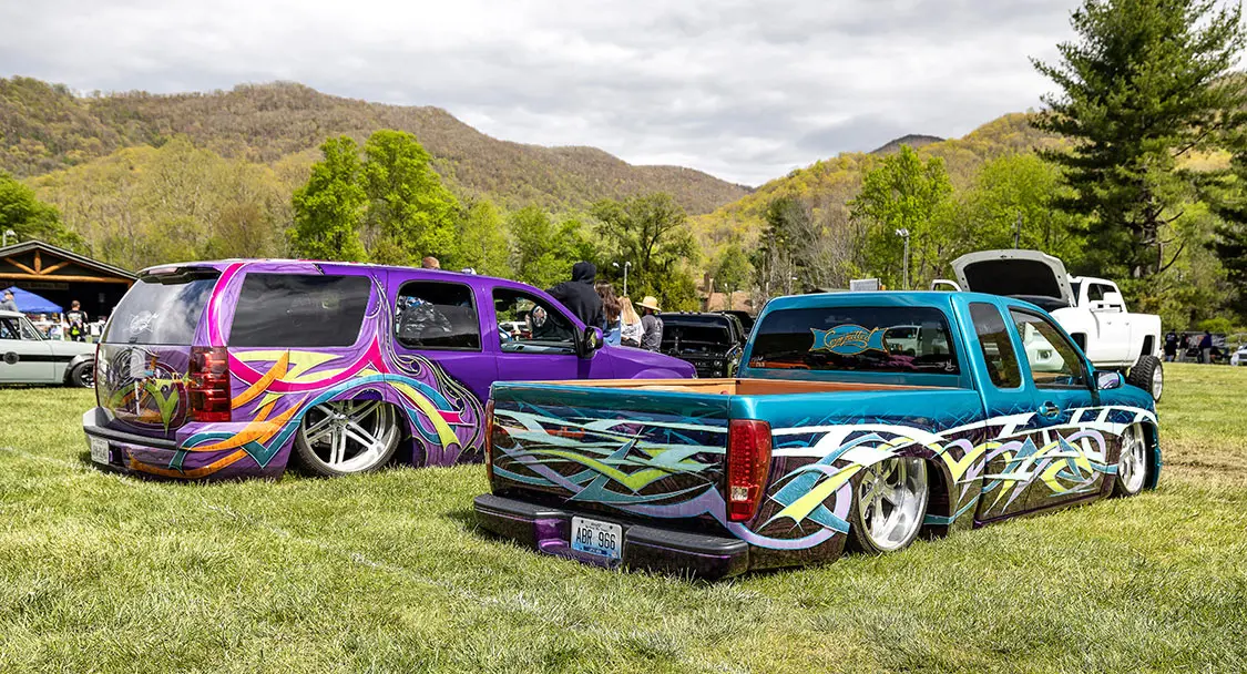 Speaking of cruising, that is something that makes this event stand out against other shows around the country. It’s held in the small town of Maggie Valley in the mountains of North Carolina where the entire town supports cruising and people enjoying their town. After show hours, the road through town is lined on both sides with chairs packed with people who watch the custom trucks cruise up and down the road like we did back in the day. You could cruise or even drag back and forth for hours and as long as you didn’t do burn-outs or speed. The town lets people enjoy what the trucks were built to do—look good driving.
