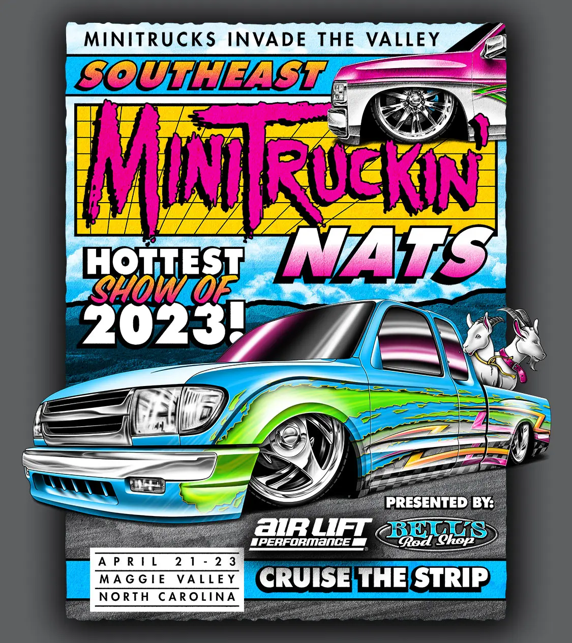 When it comes to shows that draw more custom vehicles to town than are actually able to fit inside the showgrounds, none come MORE QUICKLY TO MIND than the Southeast Mini Truckin’ Nationals. This show has an approval process for show entries due to a very limited space inside the gates. Tons of people apply for one of the 750 registration spots, but even those who don’t get approved still show up with their custom rides and enjoy the weekend.