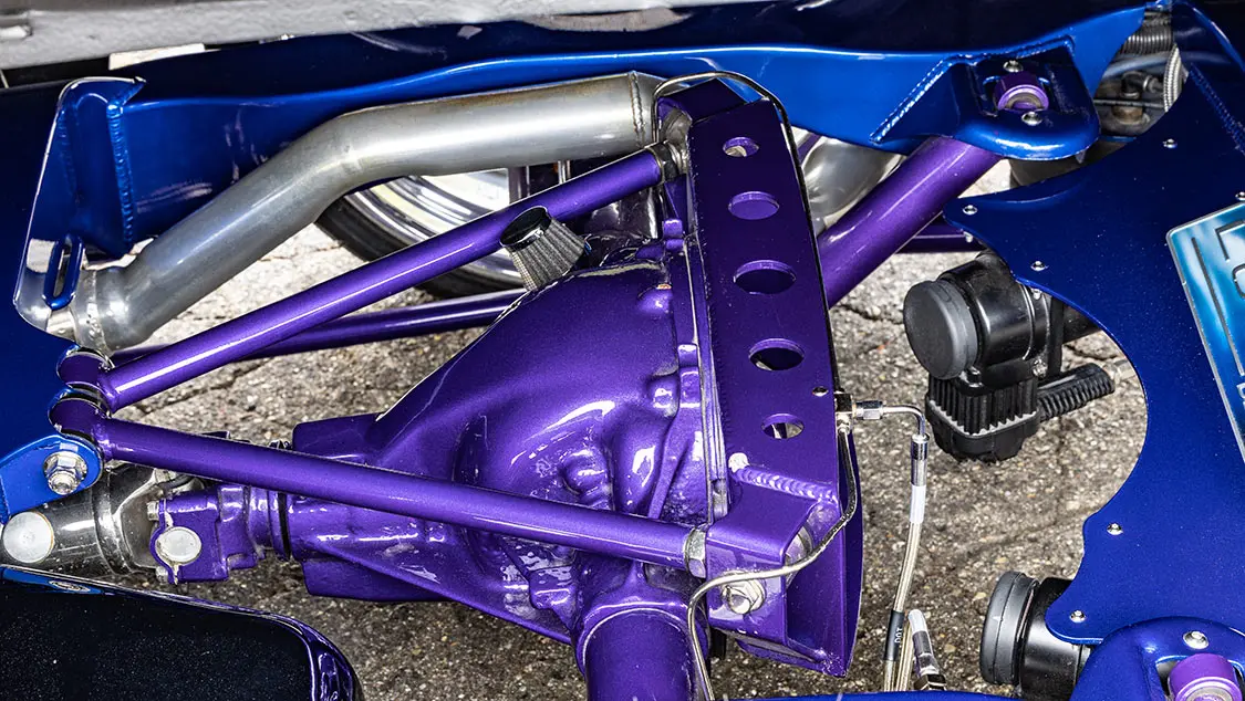 When it came to designing a custom back-half setup for the original frame, James enlisted the help of Dan Roelofsen of 519 Kustomz in Guelph, Ontario, to create a plan for a custom rear suspension system and side tilt bed mechanism. The torch was then passed to Matt Moran, who was entrusted to handle the physical building of the project. A KP Components 4-link kit was put into position, as were tubular upper and lower control arms and a no-bump steer tie-rod end package from Little Shop for the frontend. Matt then installed an Accuair e-Level air-management system to allow James easy control of his S-10’s on-the-fly altitude adjustments.