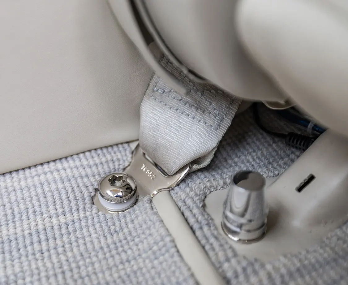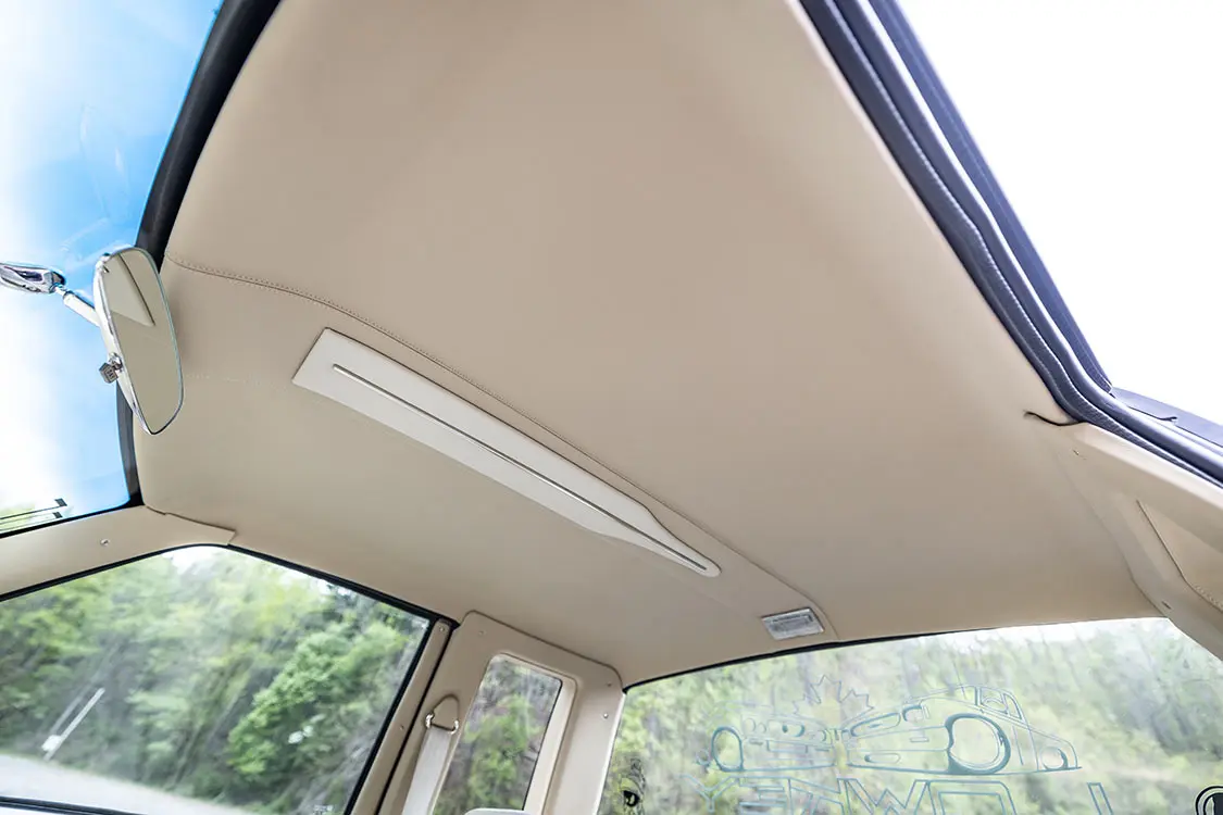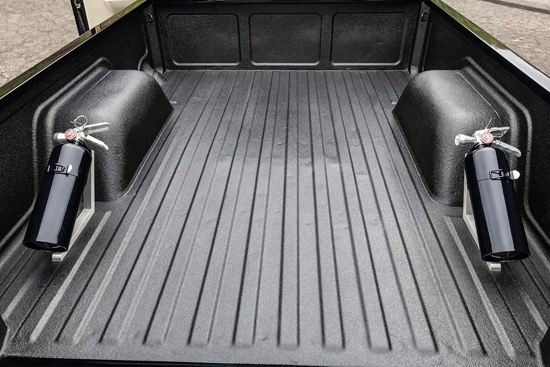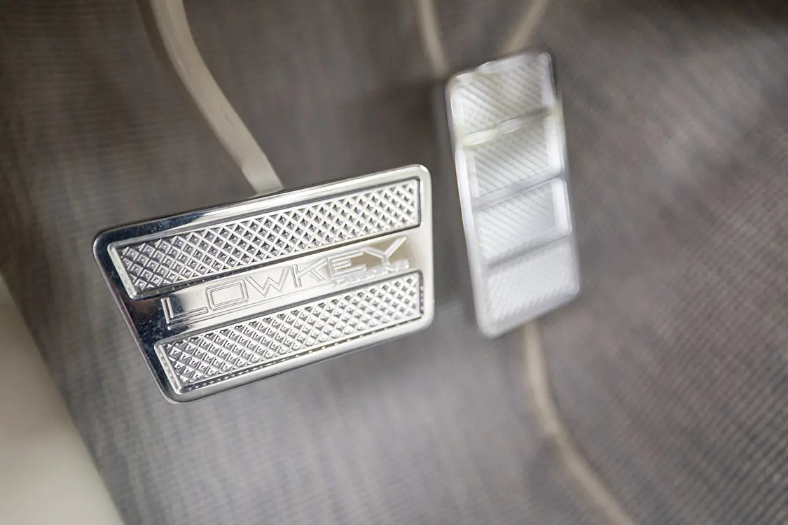 The most noticeable attribute of the S-10’s posterior must be the full size 2006 Range Rover HSE taillights. The tailgate and top edges of the bed were reshaped accordingly to balance the larger-scale tails. The result was well worth the effort, as the Rover lights fit in rather well. The reversed taillight skin also attracts attention, as does the clean Grant Fab roll pan but not nearly enough as that tilt bed. When it comes time to park the S-10 at a show, there’s no better way for James to show off the truck’s rear chassis work underneath. To finish off the S-10’s exterior overhaul, 2016 Range Rover Mariana black paint was sprayed by Jag Grewal to give the truck a simple air of sophistication.