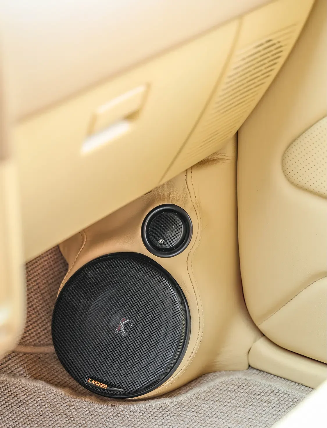 • Kicker Audio Resolution 5.25- and 4-inch speakers, 8-inch SoloBaric subs in center console, four SoloBaric 10-inch subs, 50si amp, two 100si amps, two 200si amps