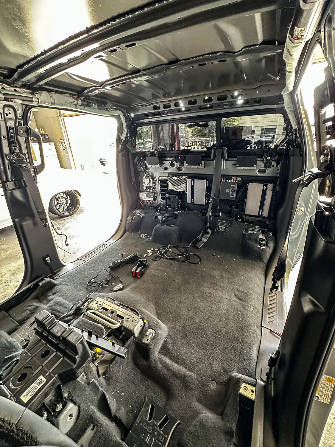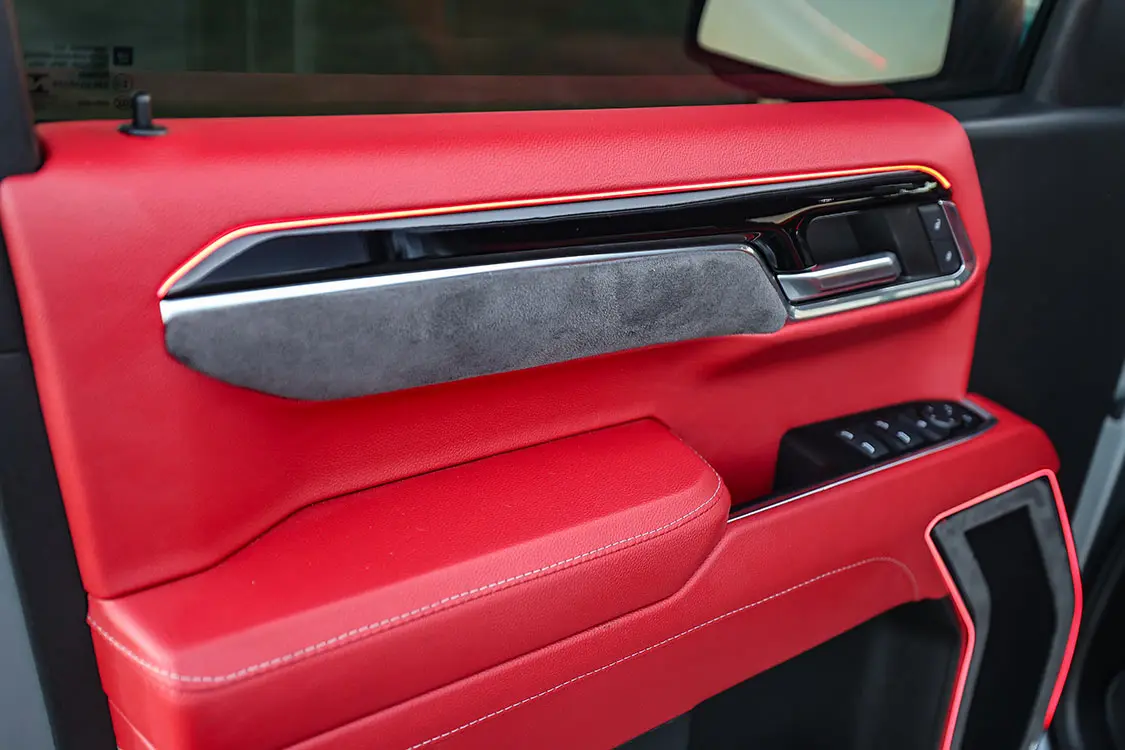 To do this transition, I reached out to our friends down at Ultimate Audio in Lexington, South Carolina. I have used them on all my SEMA builds since 2015, so I knew they would be able to handle the level of upgrade I was after. Knowing that an all-black interior with red seats wouldn’t cut it, shop owner Shawn Arnold and I sat down and came up with a game plan. Most of each door panel would receive the same red treatment to match the seats as well as part of the dash.