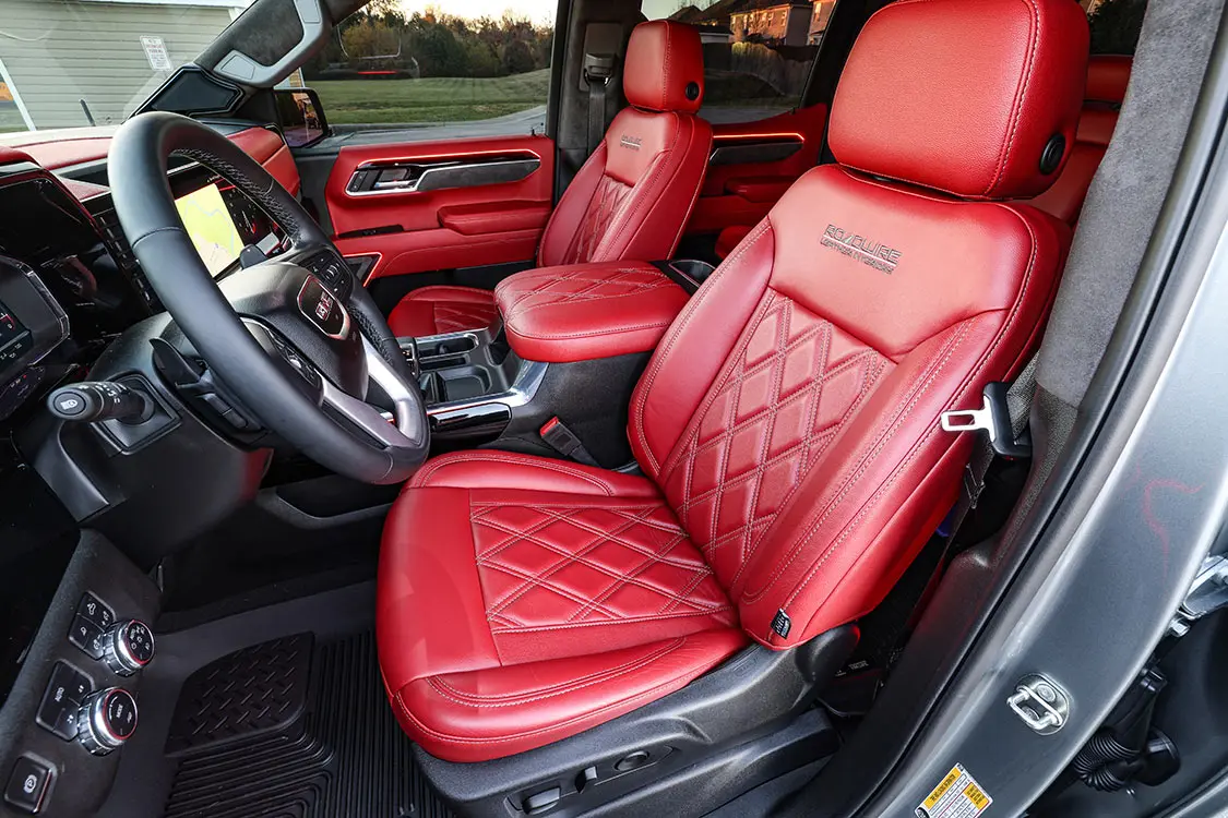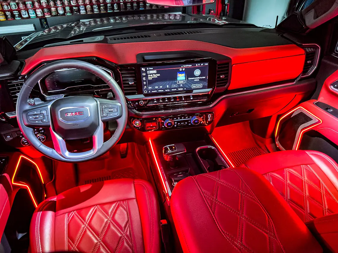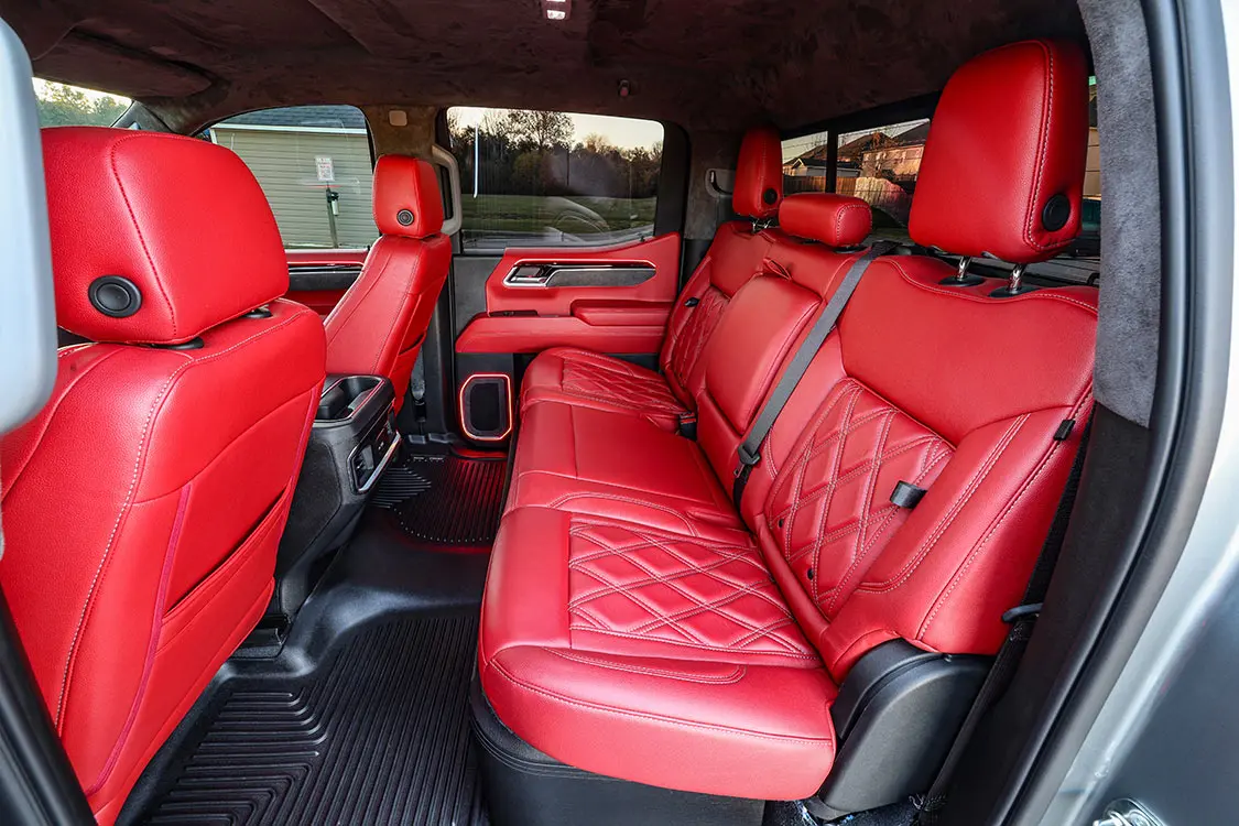 Without the ability to change the head unit on modern vehicles—every aspect and most control of the vehicle as well as HV/AC are integrated into the factory screen—most people feel upgrading audio is impossible. Factory leather is standard in most non-base trucks, too, so most people feel that is all they will every need. But for us gearheads who are addicted to custom trucks, those factory options are never enough.