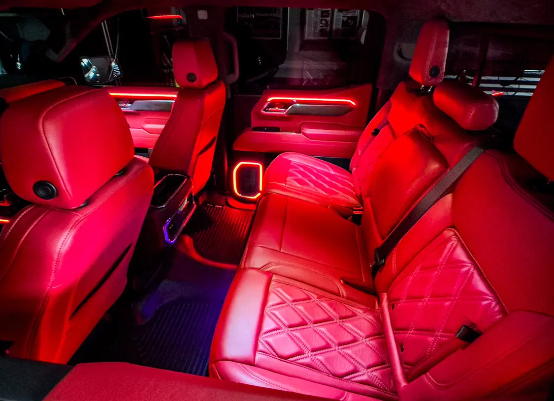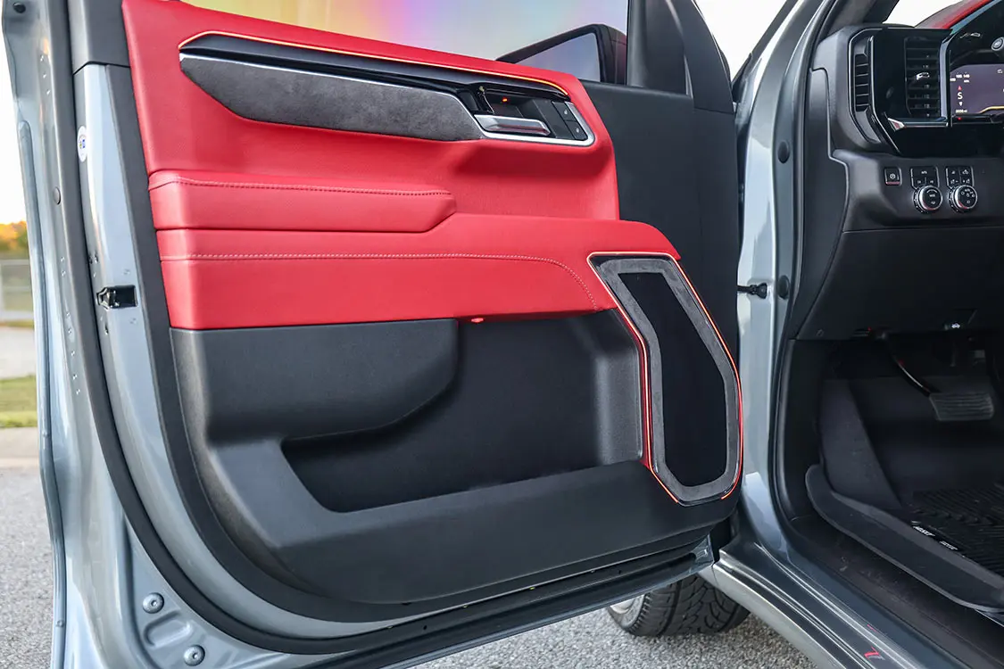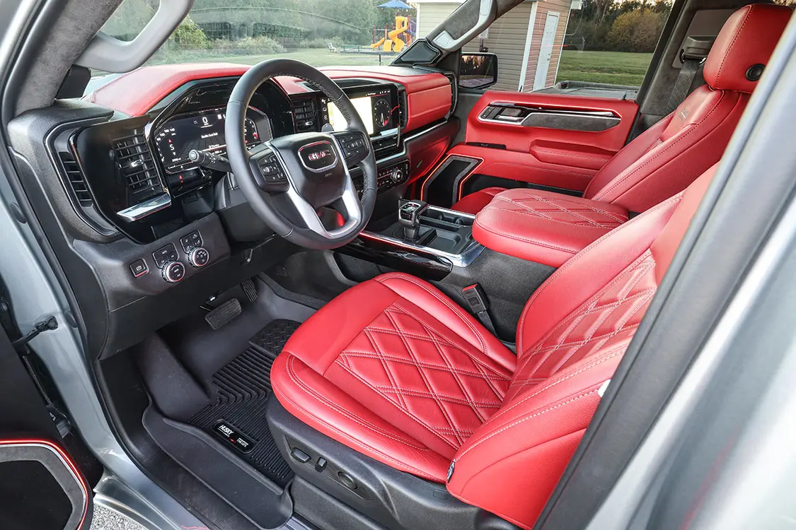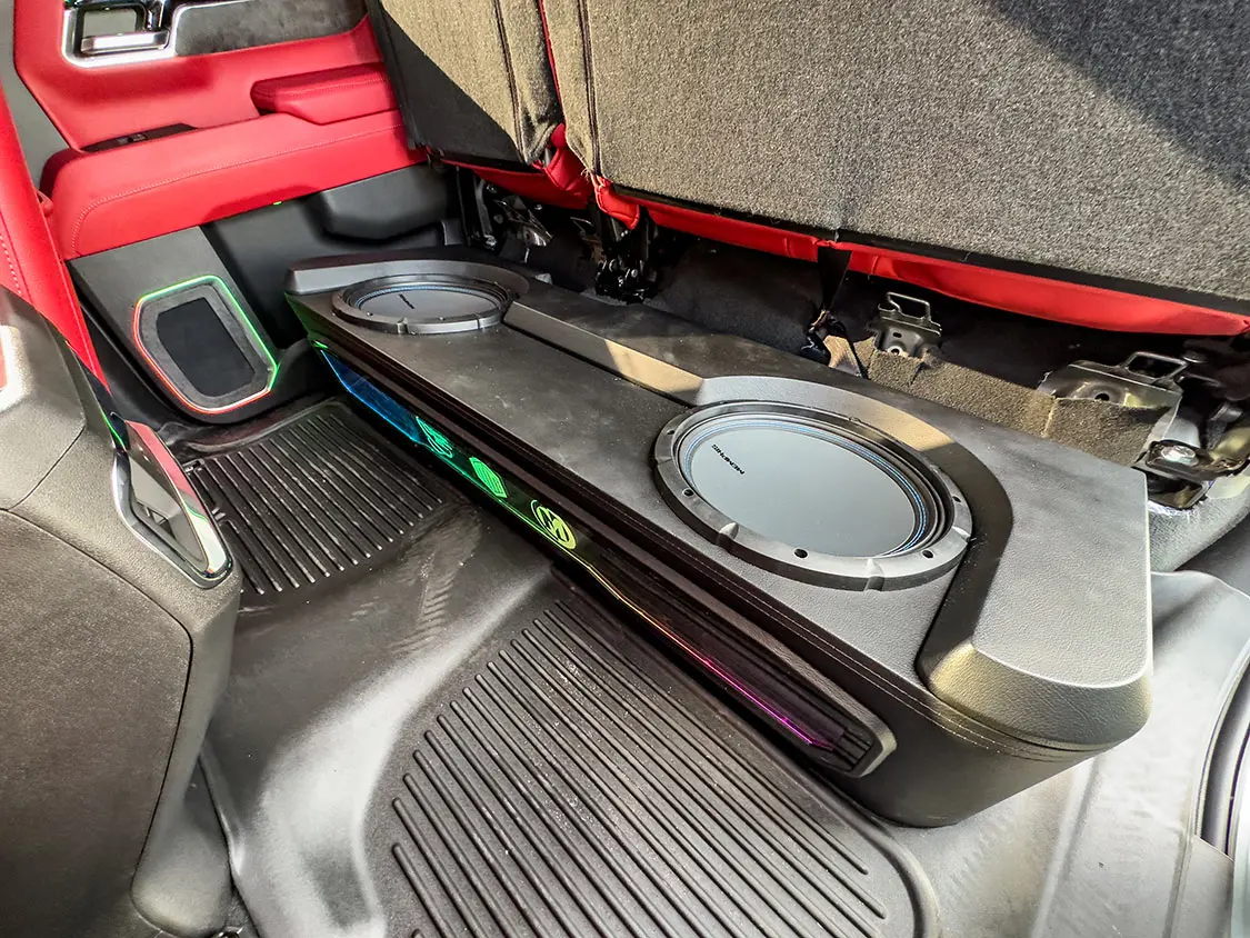 Without the ability to change the head unit on modern vehicles—every aspect and most control of the vehicle as well as HV/AC are integrated into the factory screen—most people feel upgrading audio is impossible. Factory leather is standard in most non-base trucks, too, so most people feel that is all they will every need. But for us gearheads who are addicted to custom trucks, those factory options are never enough.