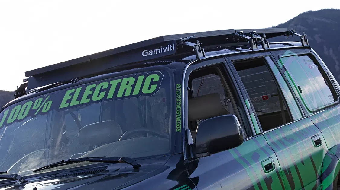 “The solar panels run through a regulator that outputs a slightly higher voltage than the DC-DC converter produces, which allows the solar panels to do most of the heavy lifting, and the DC-DC converter draws less out of the main HV battery because of it,” Jimmy says. “I was able to reduce my parasitic draw from about 600 watts down to about 200 watts.”