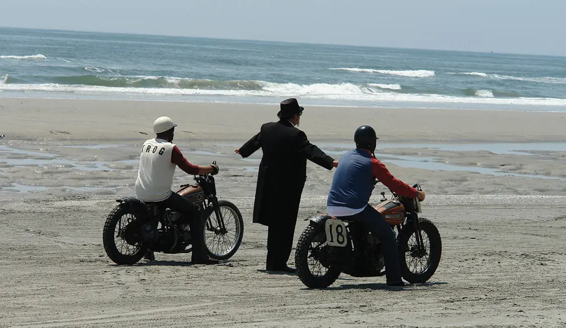 The Race of Gentlemen is a visceral, sensory event. One didn’t attend the show, they experienced it, sloshing through the wet sand upon their shoes, smelling the salt sea air mixed with thirty-year-old exhaust rust coughing into the air. The revving of engines on the line seemed to reverberate through the wild, excited crowd. Hot sun baked our skin, and vintage, boozy root beer cooled our throats.