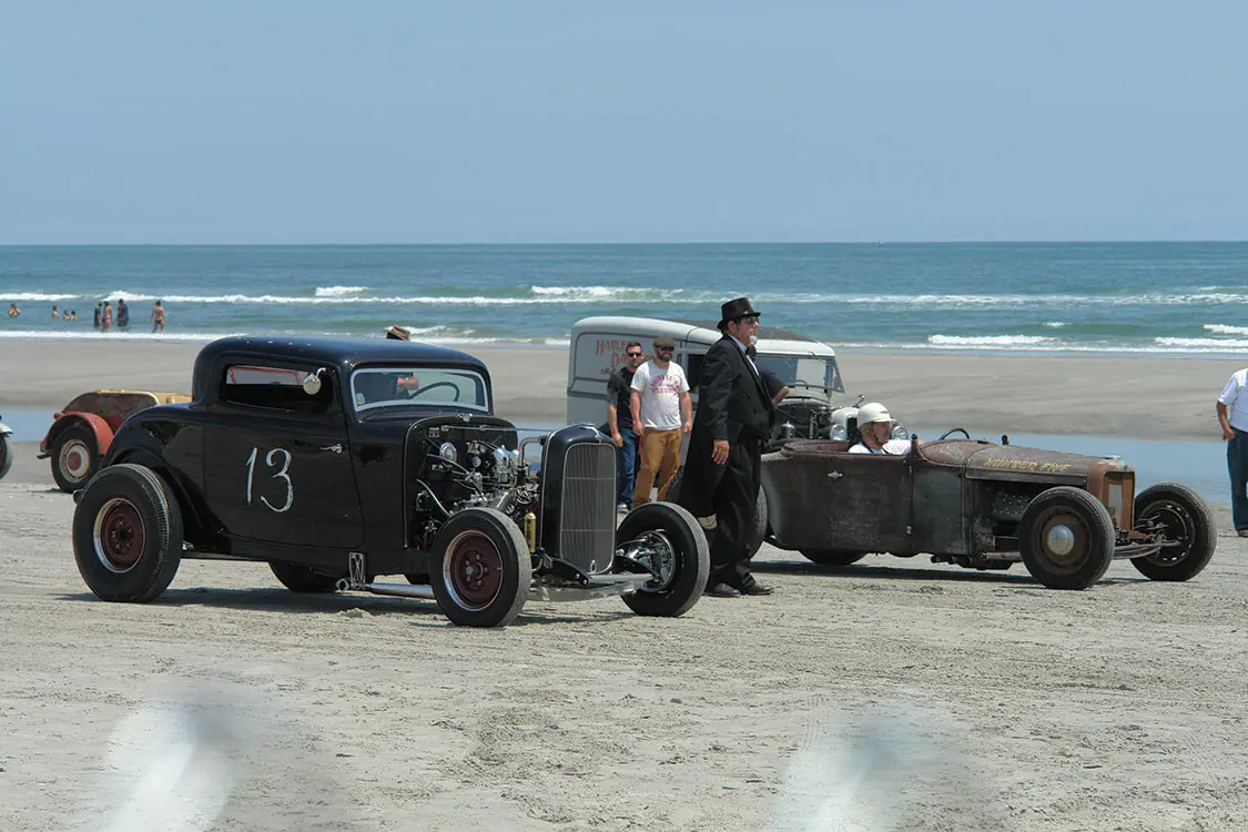 It was late summer, a few years back, and the CarShowSafari team was heading “down the shore” on the Garden State Parkway, toward the southernmost reaches of New Jersey. Not to frolic in the surf, nor to stroll the boardwalk chowing down on deep-fried delicacies. No, we were there to experience something larger than that: a vintage beach racing phenomenon called the Race of Gentlemen.
