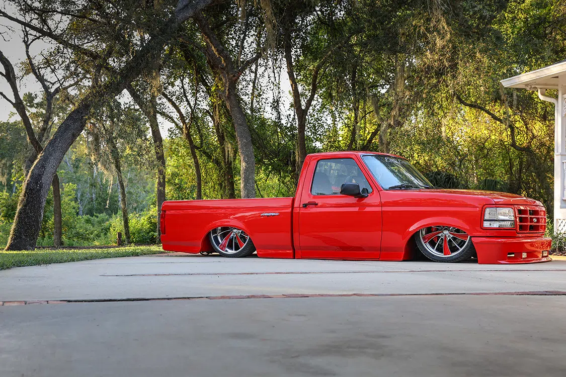 The Ford F-150 Lightning was and still is a very exciting performance-based pickup model. The inaugural 1993 first-gen model was introduced as a direct response to take on two hopped-up rivals in the OEM performance truck segment—the GMC Syclone and the Chevrolet 454SS. This was a grand time when consumers were introduced to a factory-direct combination of muscle car action in the shape of a pickup truck. Mix this in with the beginning stages of the custom sport truck scene in the early ’90s, and we had the makings of a perfect storm within the custom auto industry. The days of trucks serving as mere oafish utility vehicles were officially over from this era forward. Â