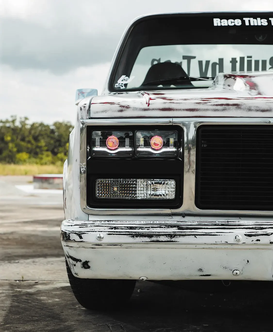 • Dual 4×6-inch LED headlights custom fabricated to fit the front grille