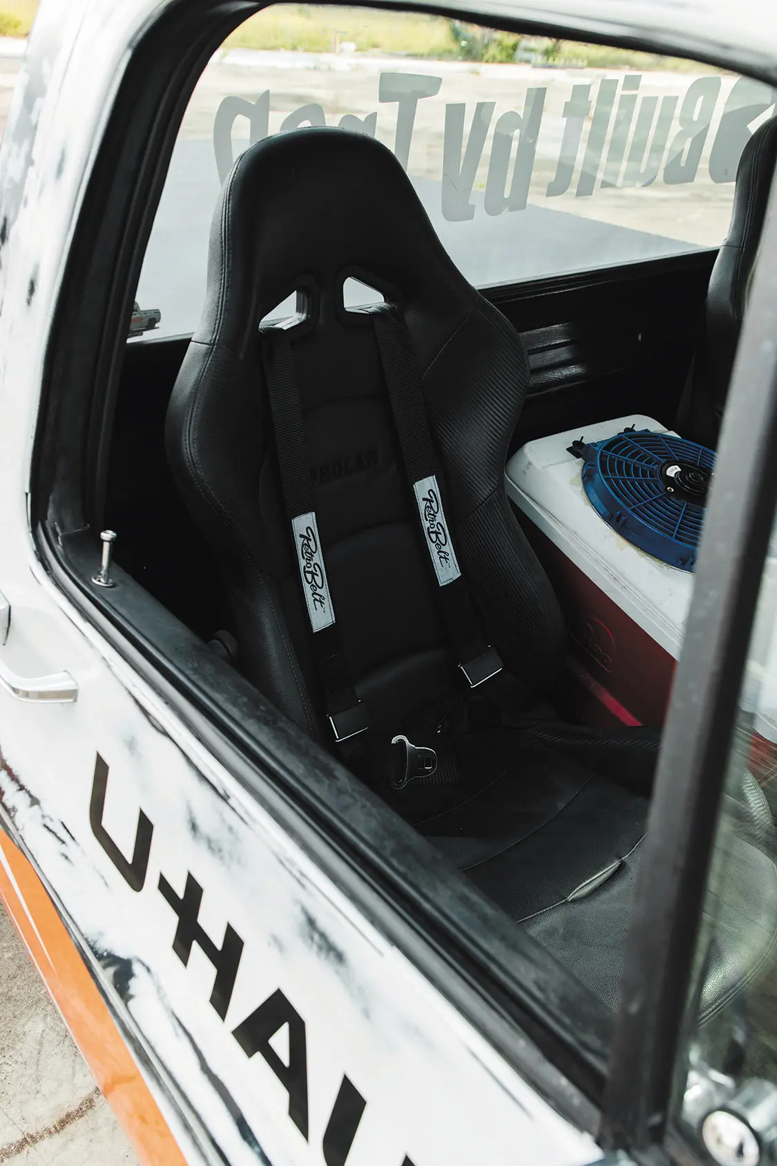 “He then painted the orange U-Haul slashes on either side, and finished it off with the U-Haul logo and other custom graphics, including a green $19.95 rental price sticker.”