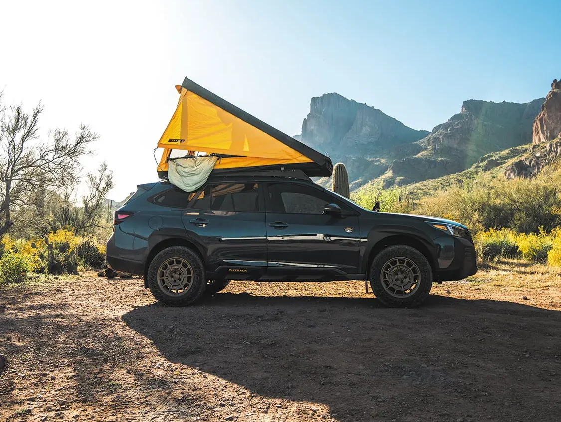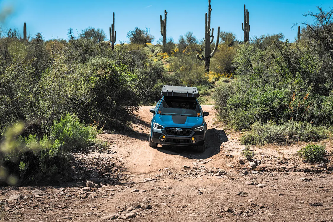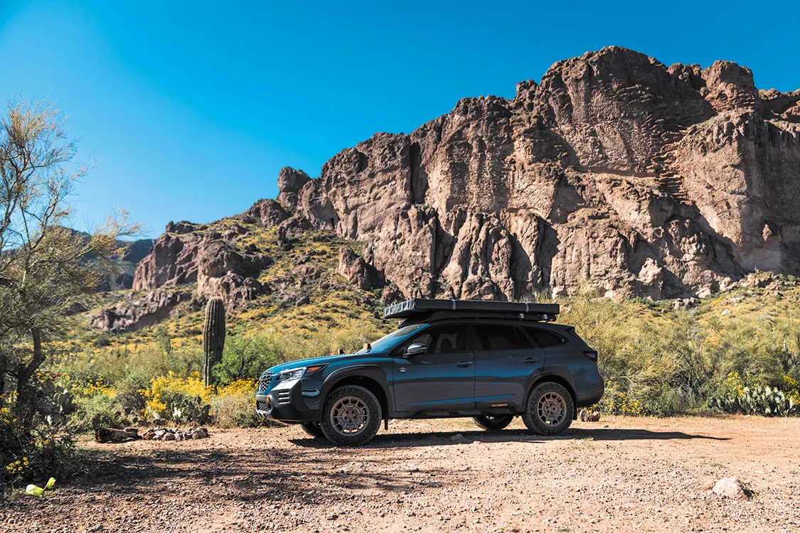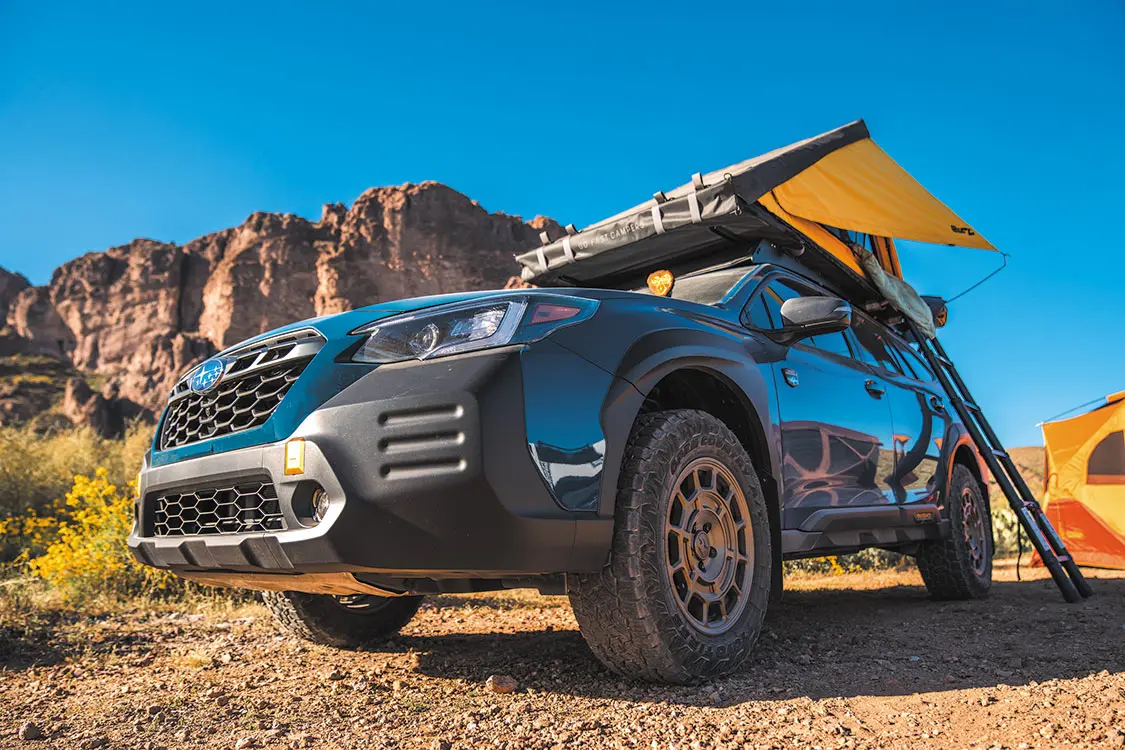 “The Wilderness Edition of the Outback comes already pretty decked out if you want something that can handle easy forest roads, but I wanted to make it mine,” Muilenberg reveals. While the stock vehicle suited most of her needs, her wealth of outdoor recreation knowledge pointed toward her first step: wheels and tires. “I knew I needed a bit more bite to my tires, and I really wanted to complement the Geyser Blue color with bronze-colored wheels.” Fifteen52 Metrix MX wheels bring in the bronze element, and, wrapped in Toyo Open Country A/T III tires, give Blue plenty of grip.