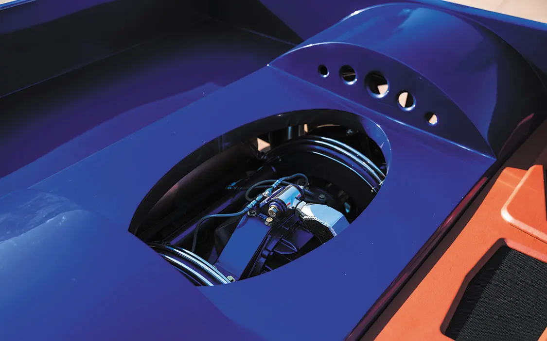 Once he had the chassis back home in San Jose, he mocked it up and sent it to Way’s Customs for new stainless steel hardlines, after which it made its way to Showoff Motorsports for powdercoating and chrome. Not too long after, Jesus called Omar and told him the body was just about ready for color, so Omar picked it up and headed out to Precision Auto Body in Ukiah, where everything was expertly finished in Lexus Ultrasonic Blue.