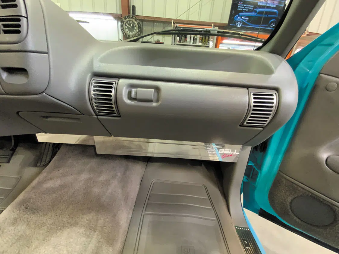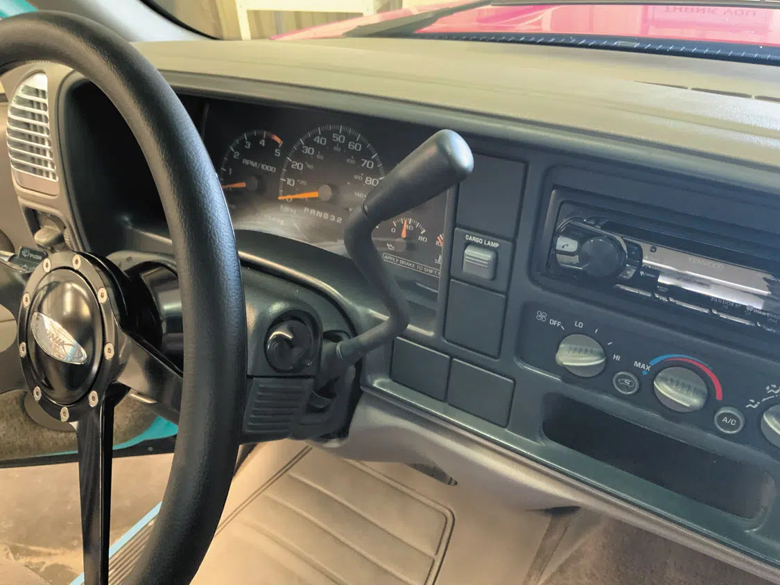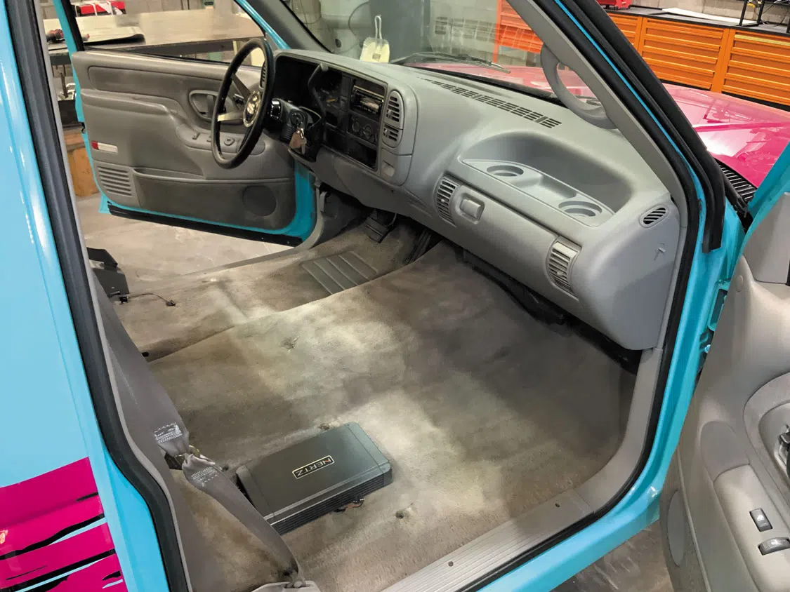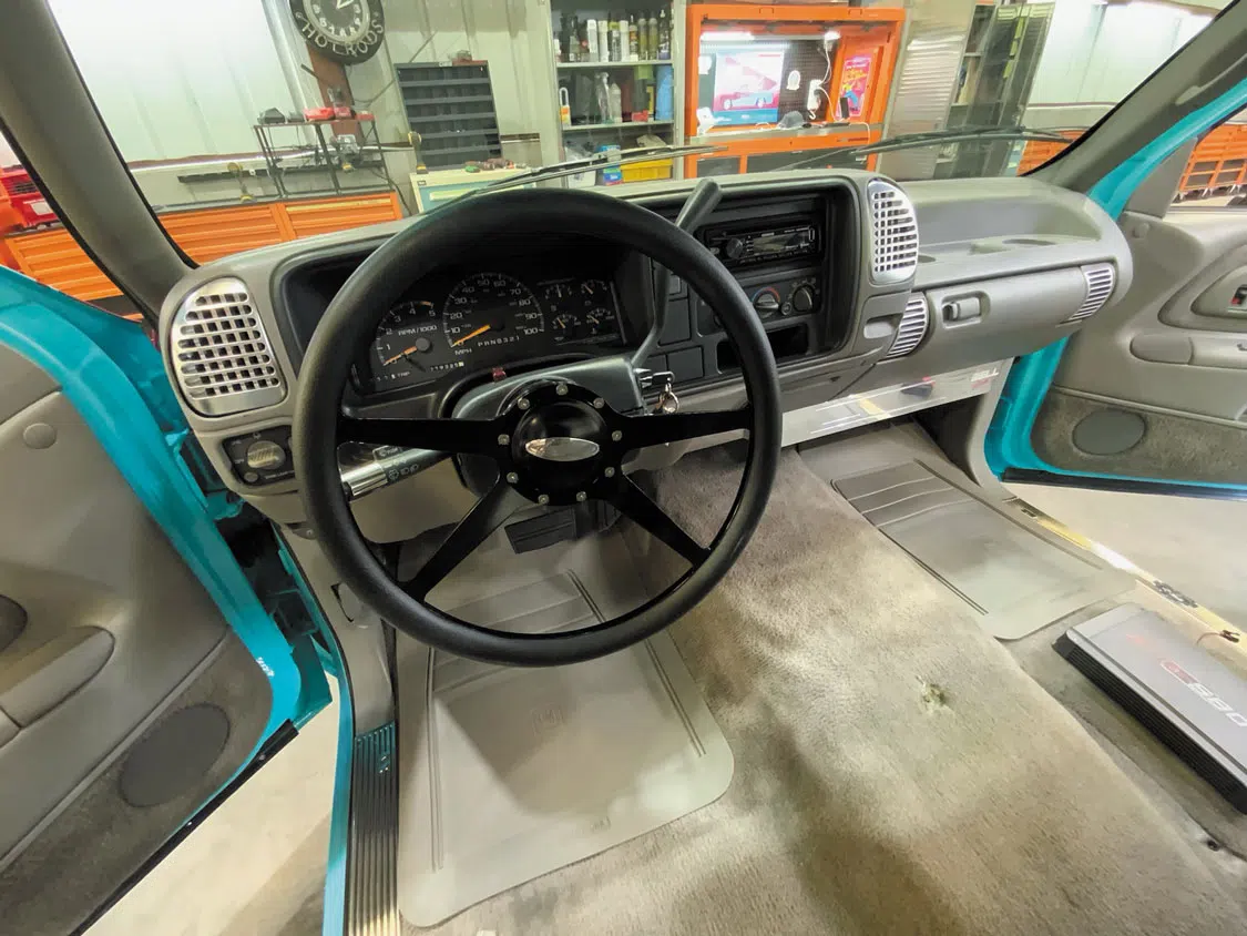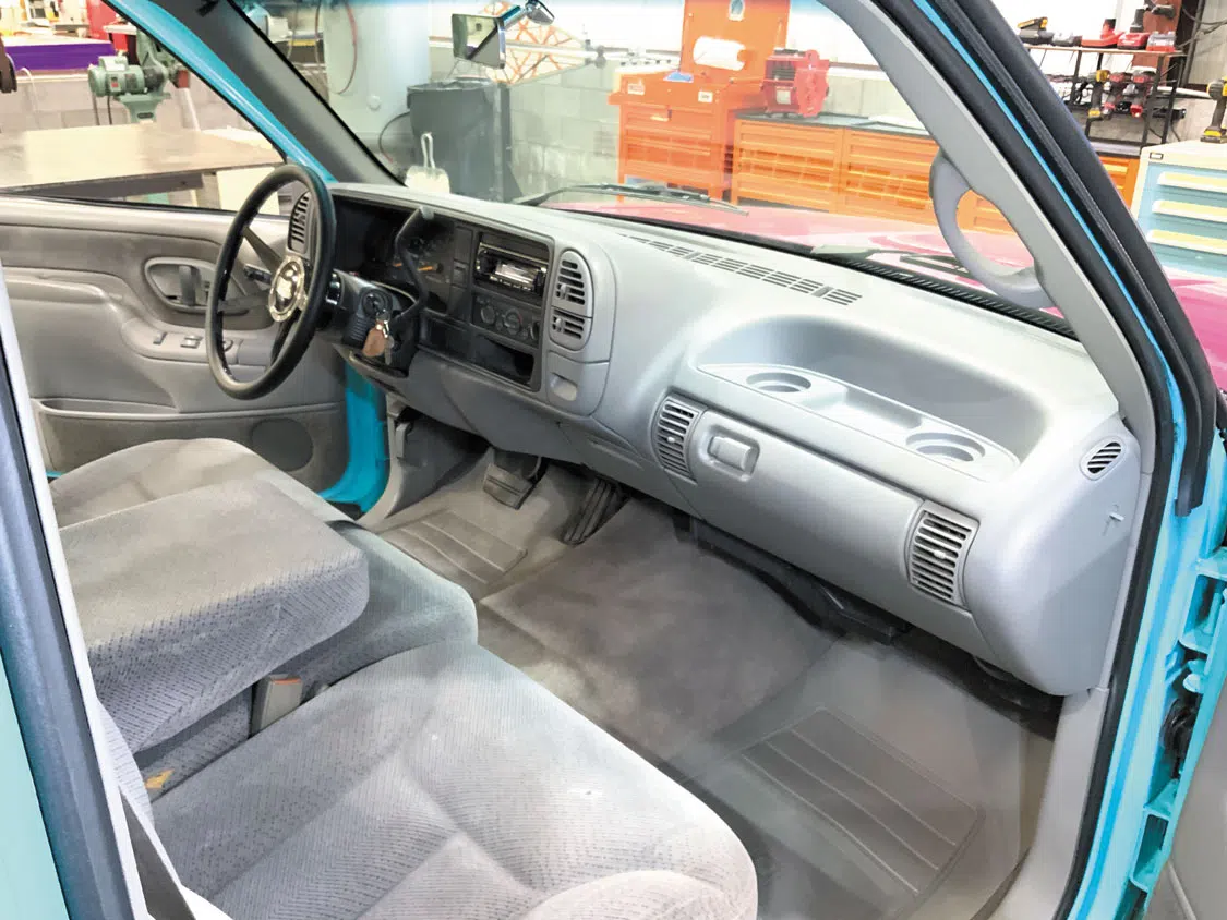 The Belltech tribute truck sports a stock interior—for now.