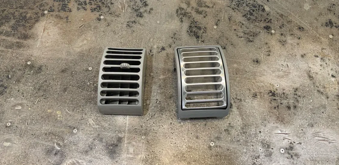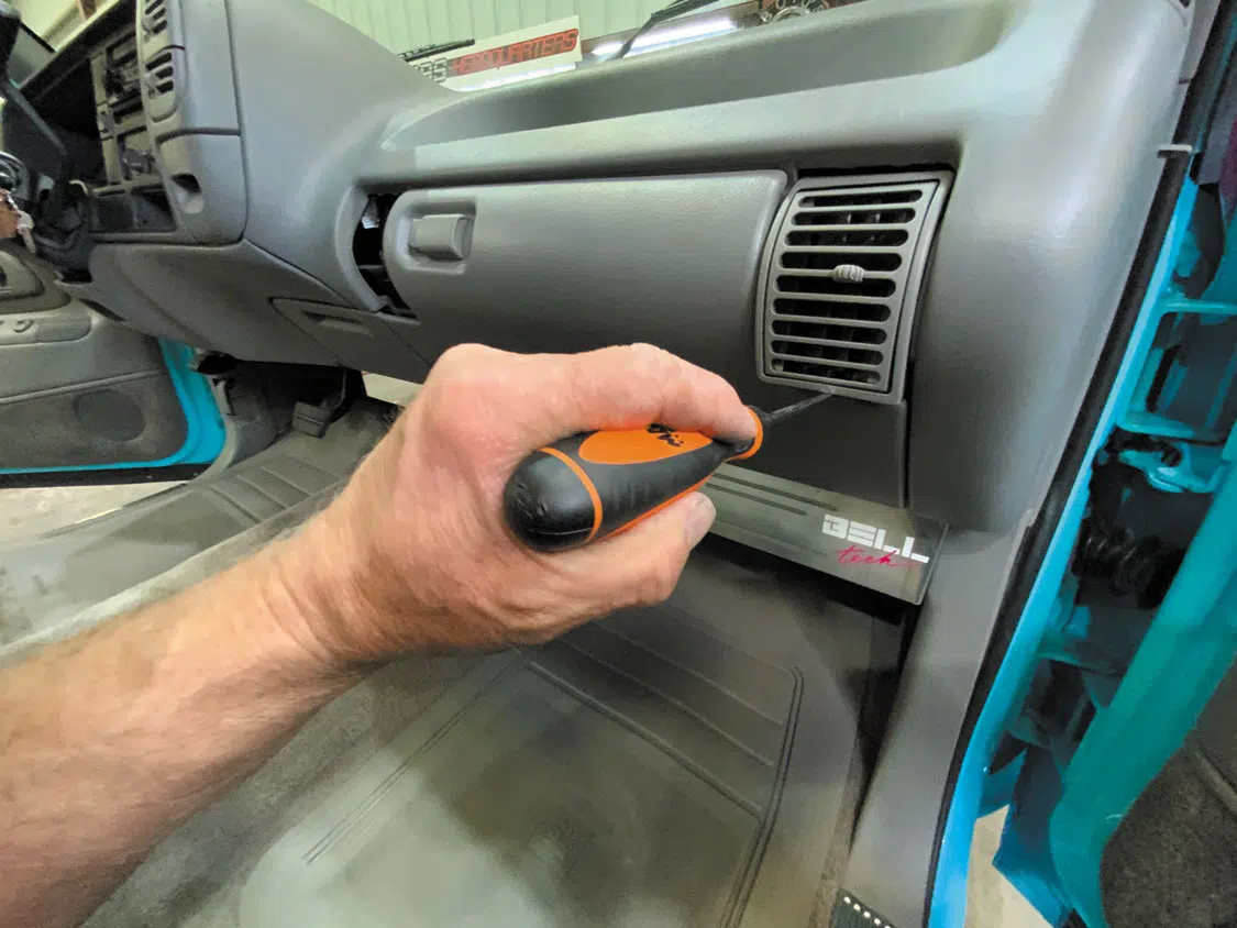 Trim the back of the right side vent so the billet vent can turn easily in the bezel.