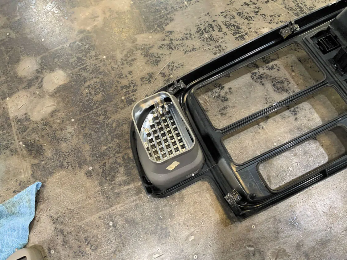 Remove the center vent —remember the plastic is 28 years, so take your time.