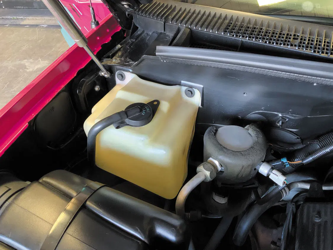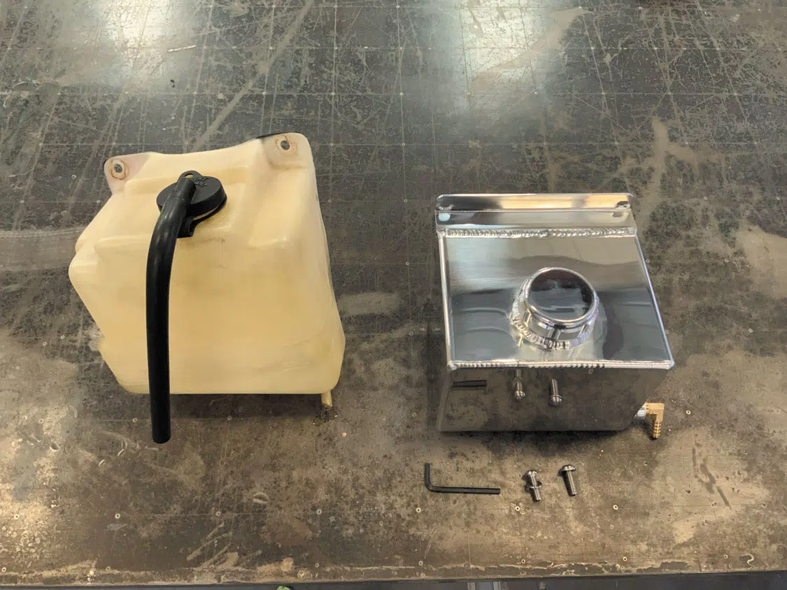The original coolant tank is 28 years old, and it shows.