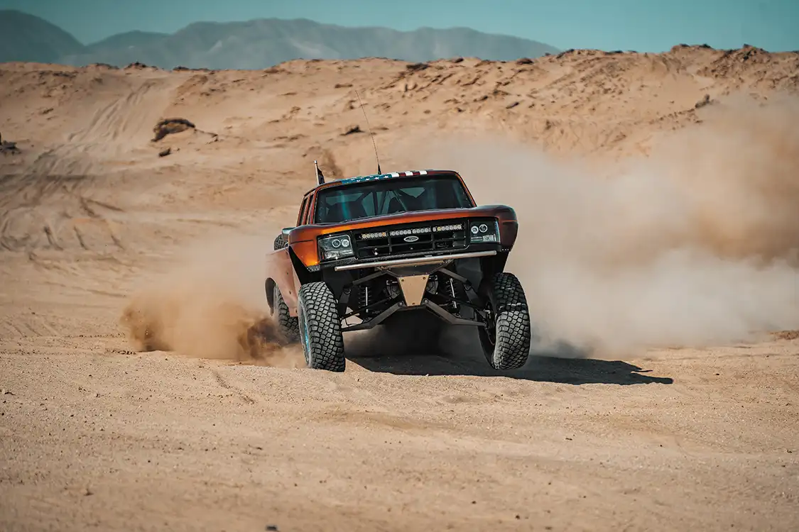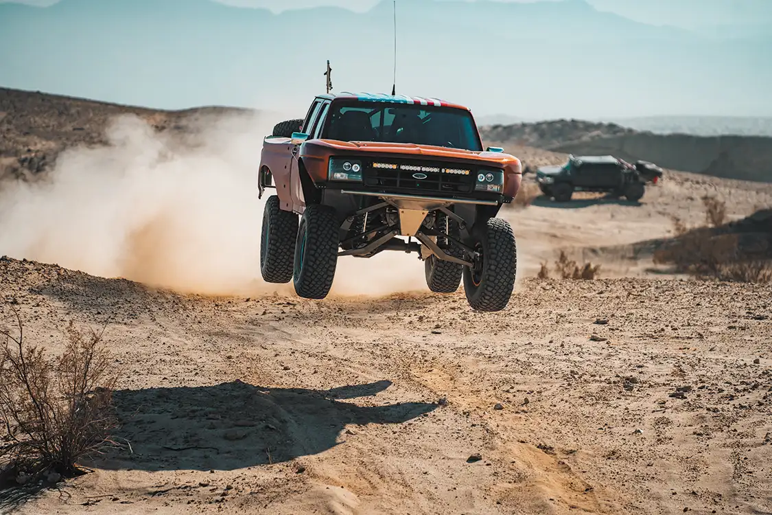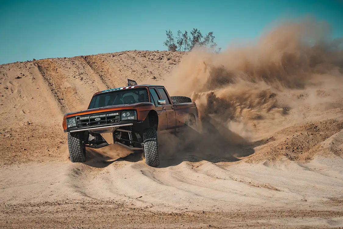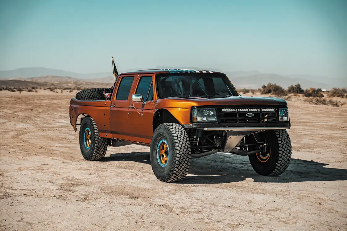 Your dad may have had an OBS Ford pickup back when you were younger, but we guarantee it wasn’t as cool as Paul Fisher’s F-350. Known as All-American Sender for obvious reasons, this full-size Ford launches into the sky like a rocket ship and lands with cat-like grace. All Paul wanted was a legit freestyle prerunner, and one the dust settled, that’s exactly what he got. While the trail to get here hasn’t been quick, or cheap for that matter, Paul continued to grind at a steady pace, reminding himself to listen to what his truck needed along the way.