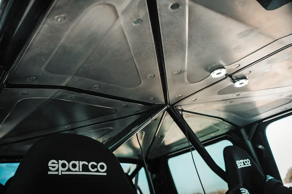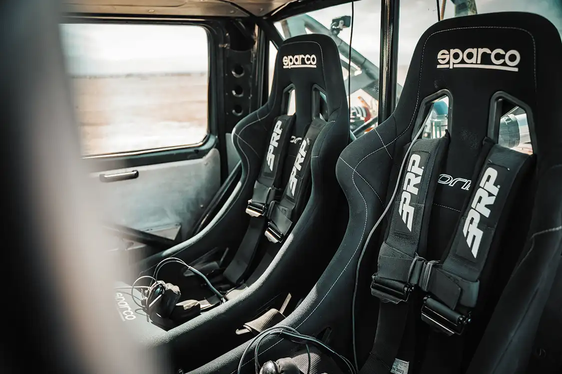 Interior: Sparco black cloth seats; Dirt King full 2-inch DOM cage; MOMO steering wheel; PCI Race Radios intercom system