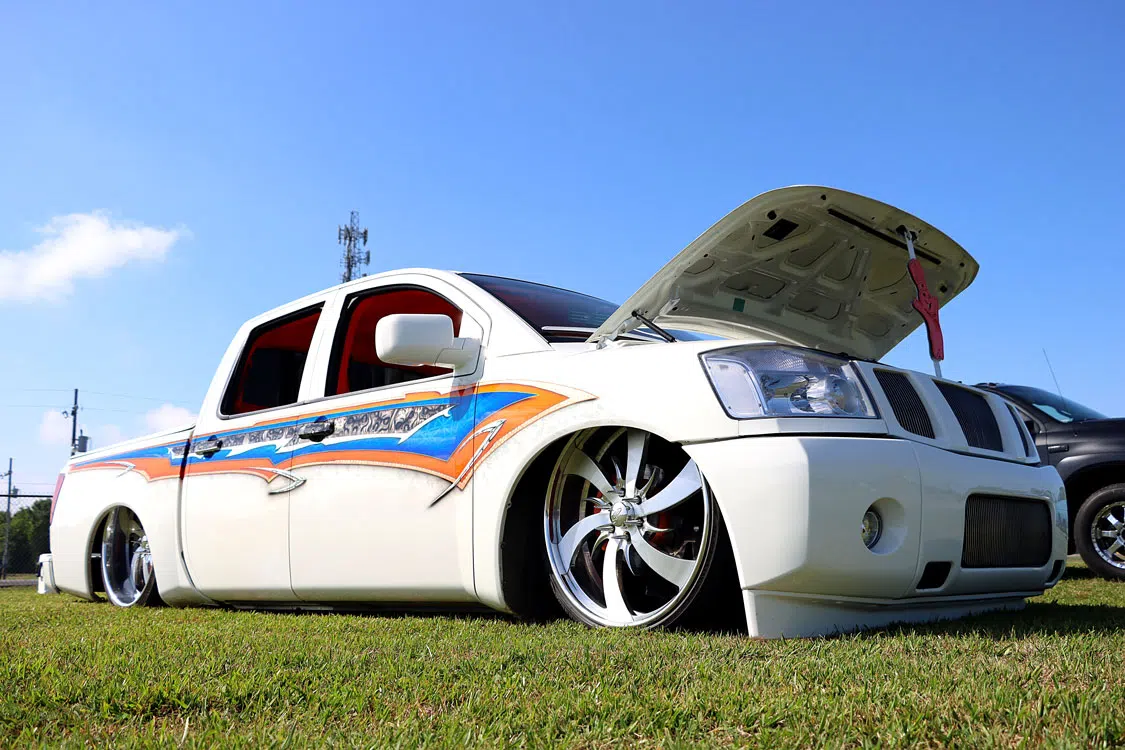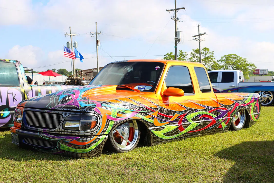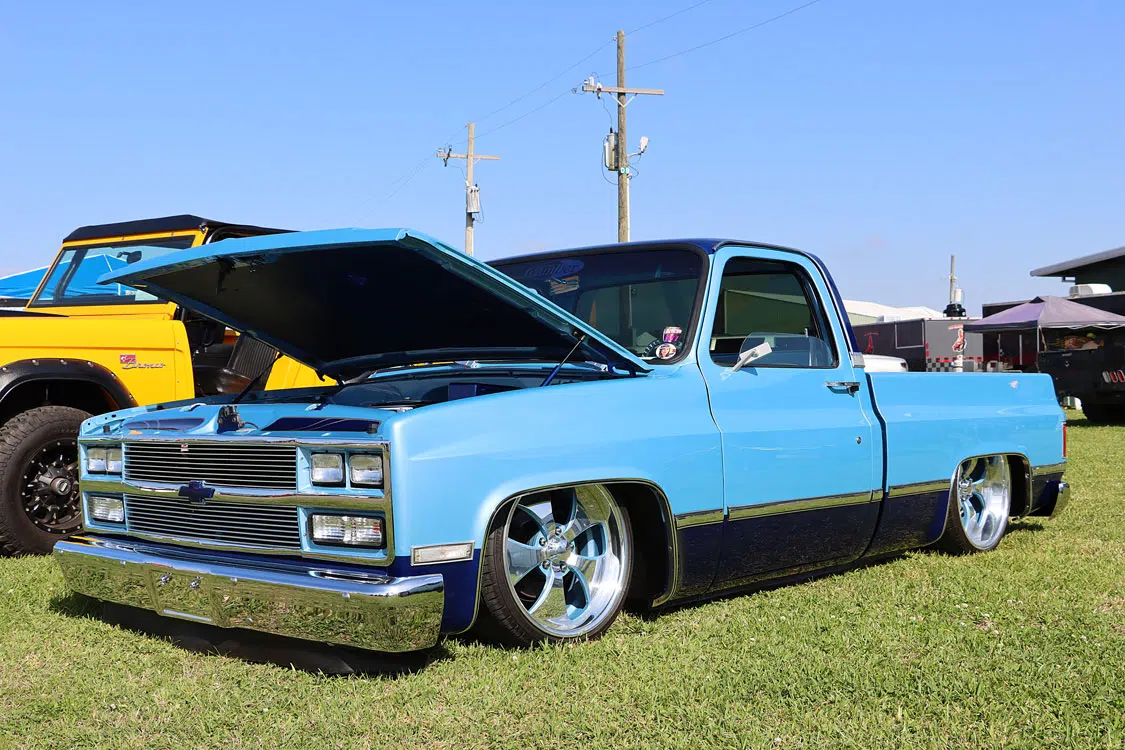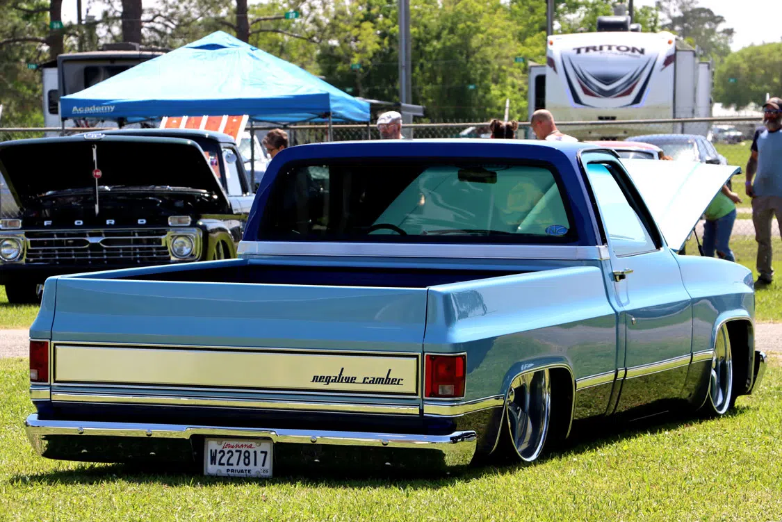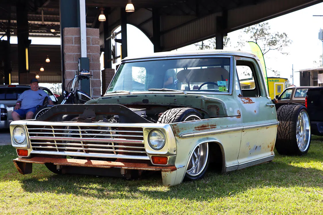 The event happened at the Rayne Frog Festival pavilion with plenty of room for activities. Walking through the gate, I can always count on KIK Clothing to be set up in full display. Vendors lined up in a straight line down the blacktop, assuring me that I wouldn’t go hungry with food and drinks on tap. A healthy mix of VIP parking was underneath and surrounding the pavilion. Leaking out to the show field, the eye candy continued. I easily put my steps in while I captured a killer combo of rides, from lifted to lowered, classic to modern. Throw in the F-100 Takeover crew lined up in full force, and Altered Metal definitely threw punches and is making a name for itself in the show scene.
