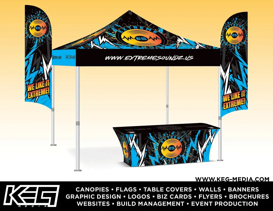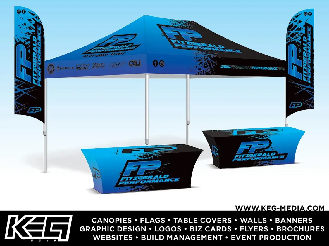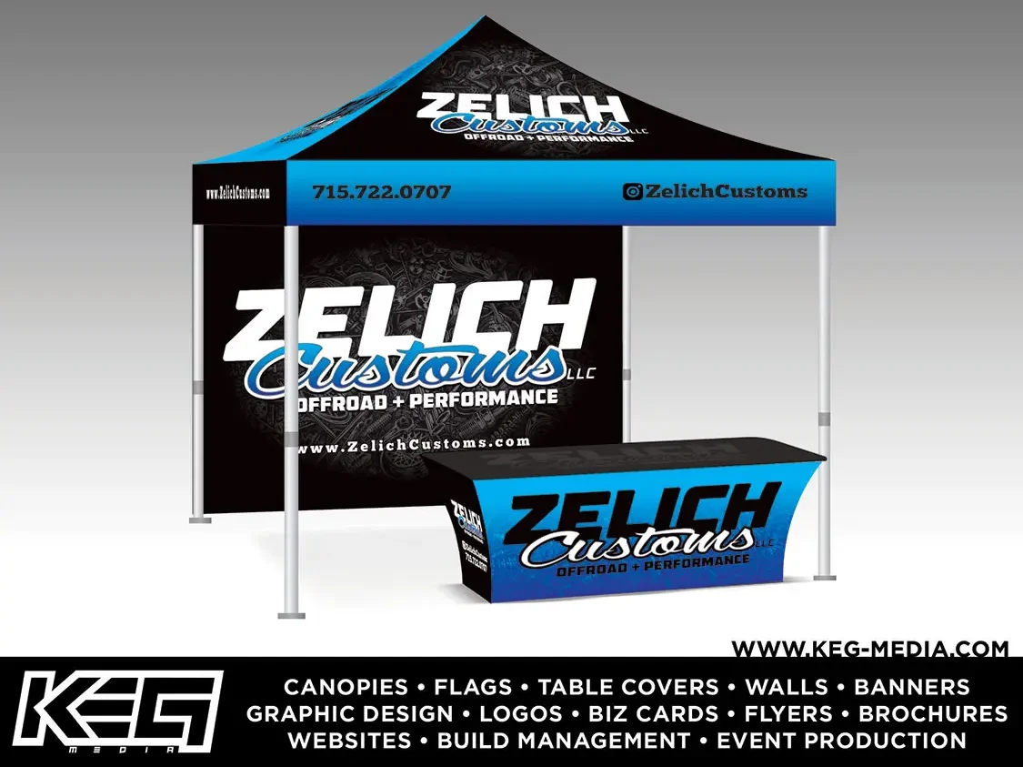 “KEG Media still offers a wide array of printing, such as business cards, flyers, brochures, banners, decals, and more. A couple of years ago, we started providing our clients with custom printed canopies, flags, and table covers, which have become popular. These tie in well with the event promotion side of our business since we have a lot of contacts with vendors who need these products. We still do digital renderings; however, we have evolved over the years and now provide 3D renderings for our clients.