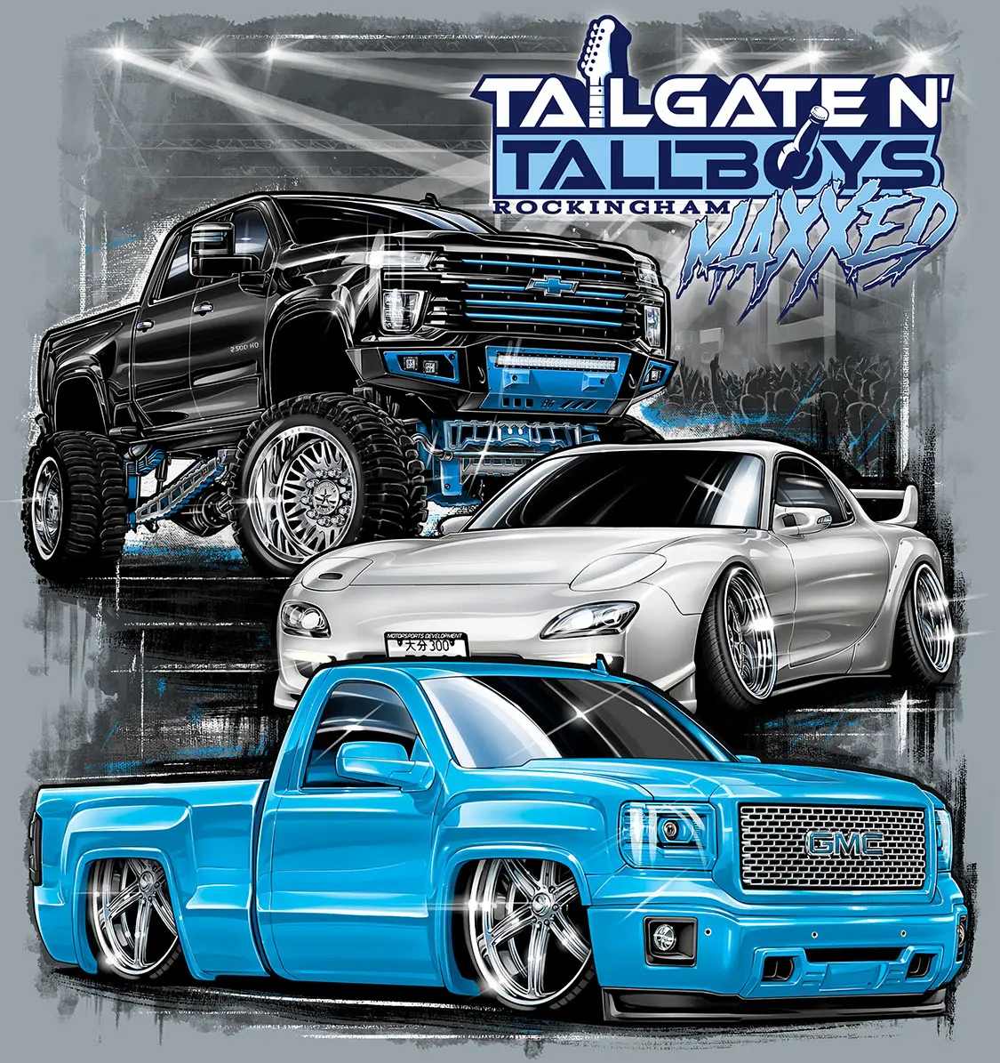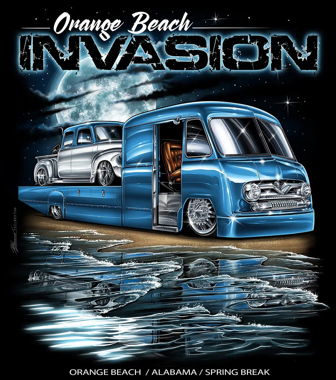 “Years ago, Photoshop had a free trial on new computers. This was back in the 2.0 era, circa summer 2002. I opened it, started playing around, and figured out how to cut out trucks, lower and lift them, and change the paint and wheels. I posted a few on the old Street Source Magazine (SSM) forum and people started asking me to do their vehicles. Pretty soon, I was so busy doing these renderings when I got home from work. I decided to charge a bit for my time and started using Kutting Edge Graphix for my services. After a short time, I was making better money working for myself, so I quit my job and did renderings full time. Eventually, clients would ask me if I could make a logo, shirt design, business cards, and banners, so we added these things to our list of services and kept growing.”