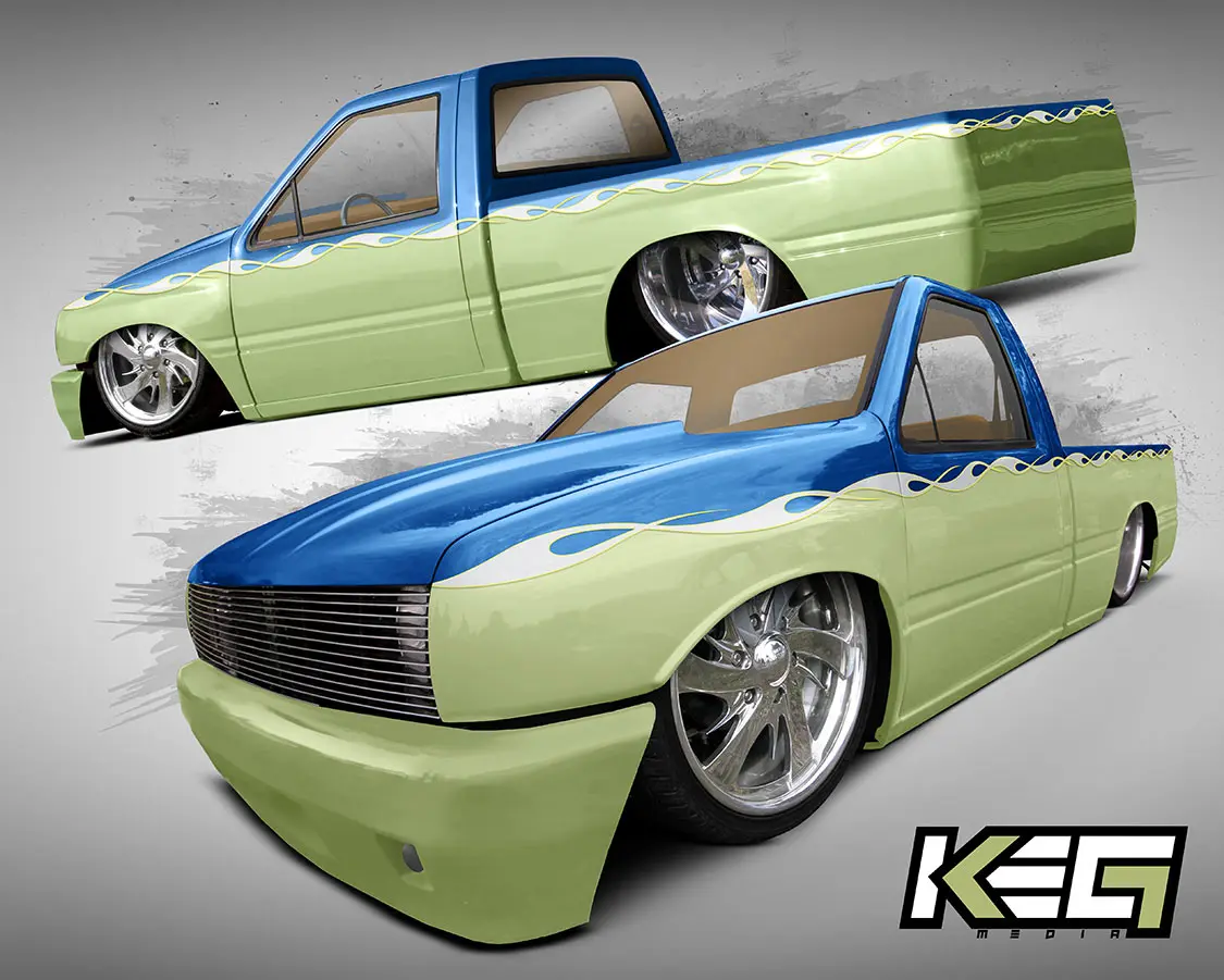 In the custom vehicle world, we have all seen vehicle renderings of what a build will look like, or admired a shop’s cool logo design or an attractive business card that was handed to us at a truck show. What you may not know is a lot of these things probably tie back to one company, almost like that six degrees of Kevin Bacon thing. When it comes to all these aspects, there seems to be a single entity that has had its hand in a lot of it over the past couple of decades, and that is KEG Media. It has been one of the premier stops for renderings, car show flyers, logo design, and so much more. The country’s top builders count on KEG to create the artwork needed for customer builds of all calibers.