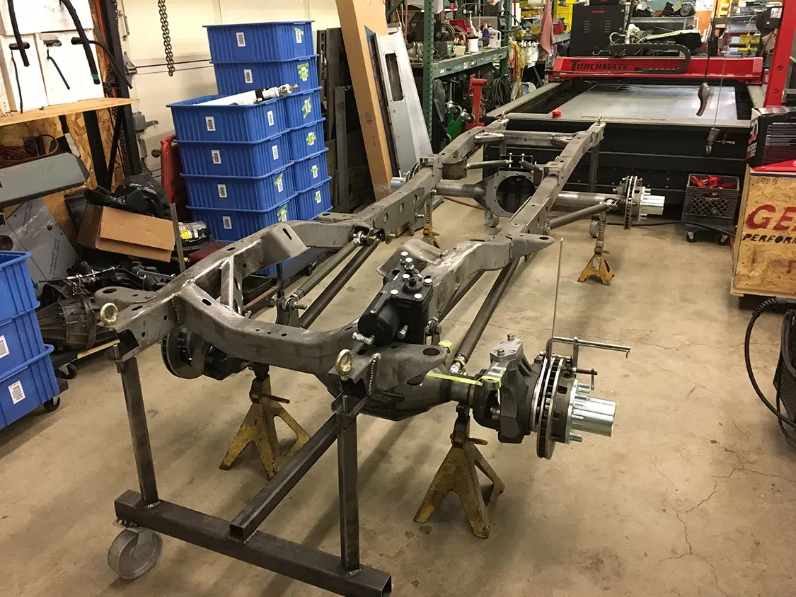 Suspension: Front- Parallel Four Link w/ Panhard Bar, Wild Horses Steering Box & Hydraulic Assist, 12” ORI Struts w/ Remote Reservoirs, Fox 4” Nitrogen Bump-Stops; Rear- Double Triangulated Four-Link, 14” ORI Struts w/ Remote Reservoirs