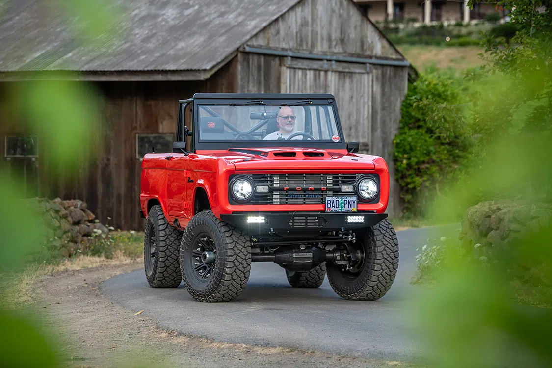 “A Dennis Carpenter steel replacement body has been super customized to make everything work on this vehicle, but kept as stock looking as possible because the Barricklows ‘wanted to retain the un-cut look’ of the classic Bronco.”
