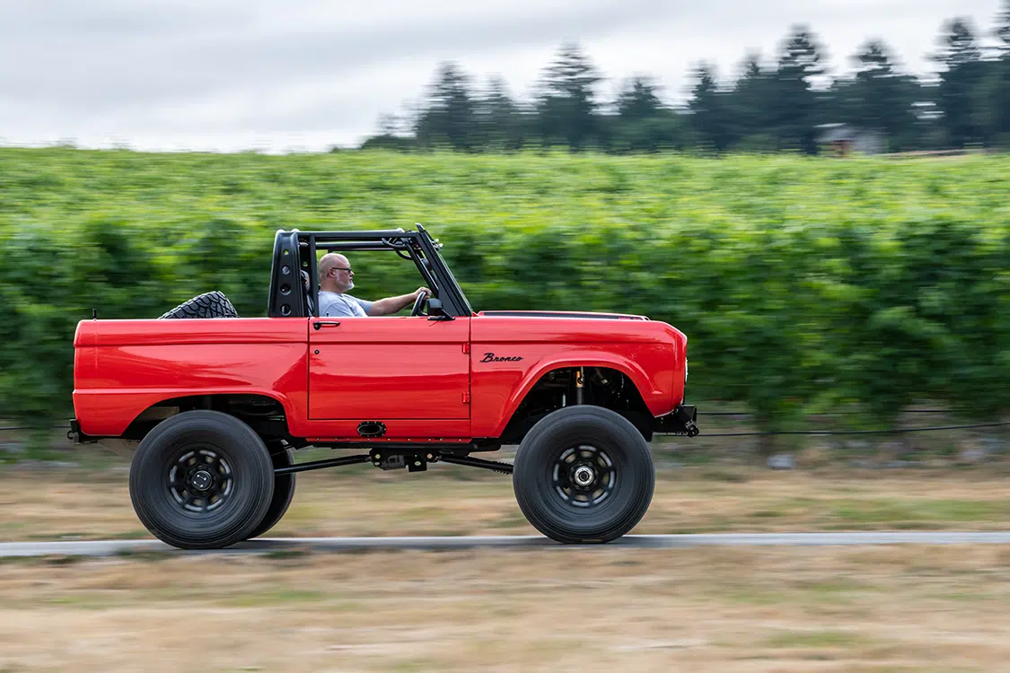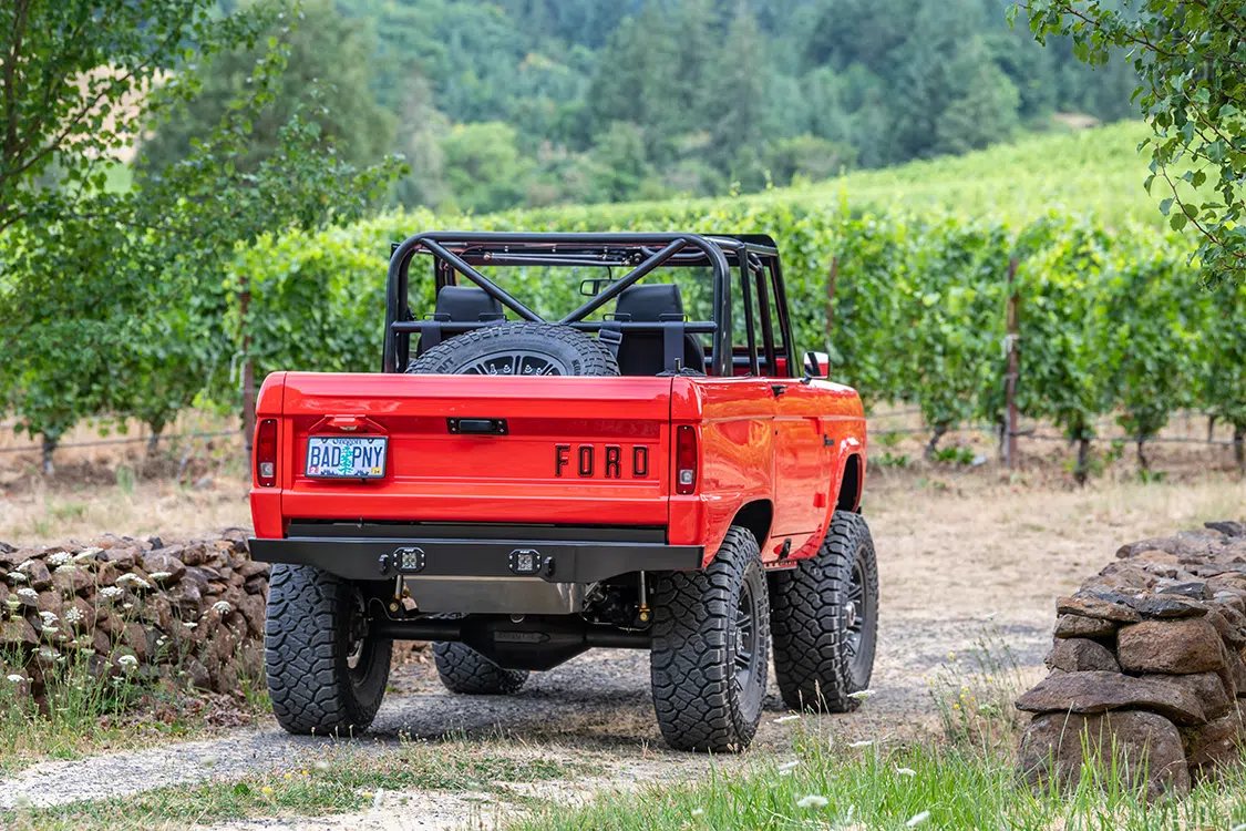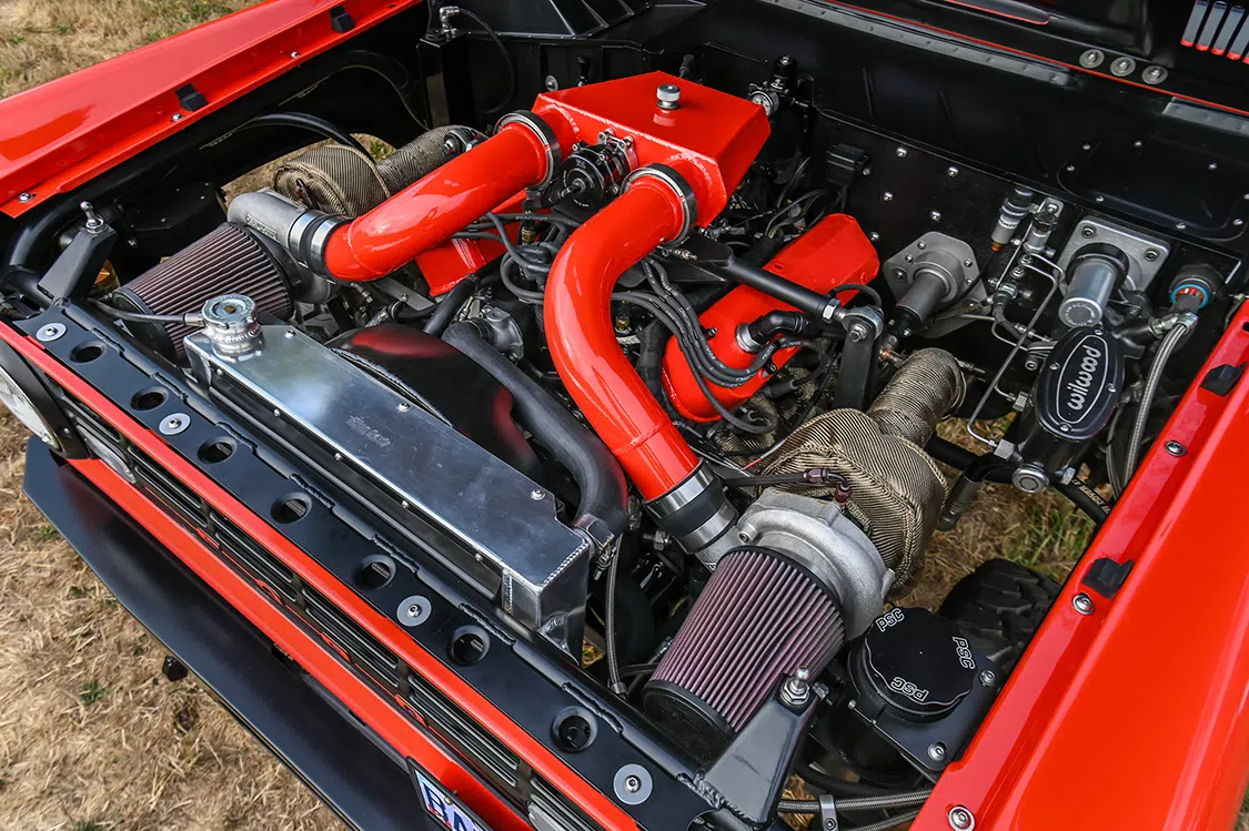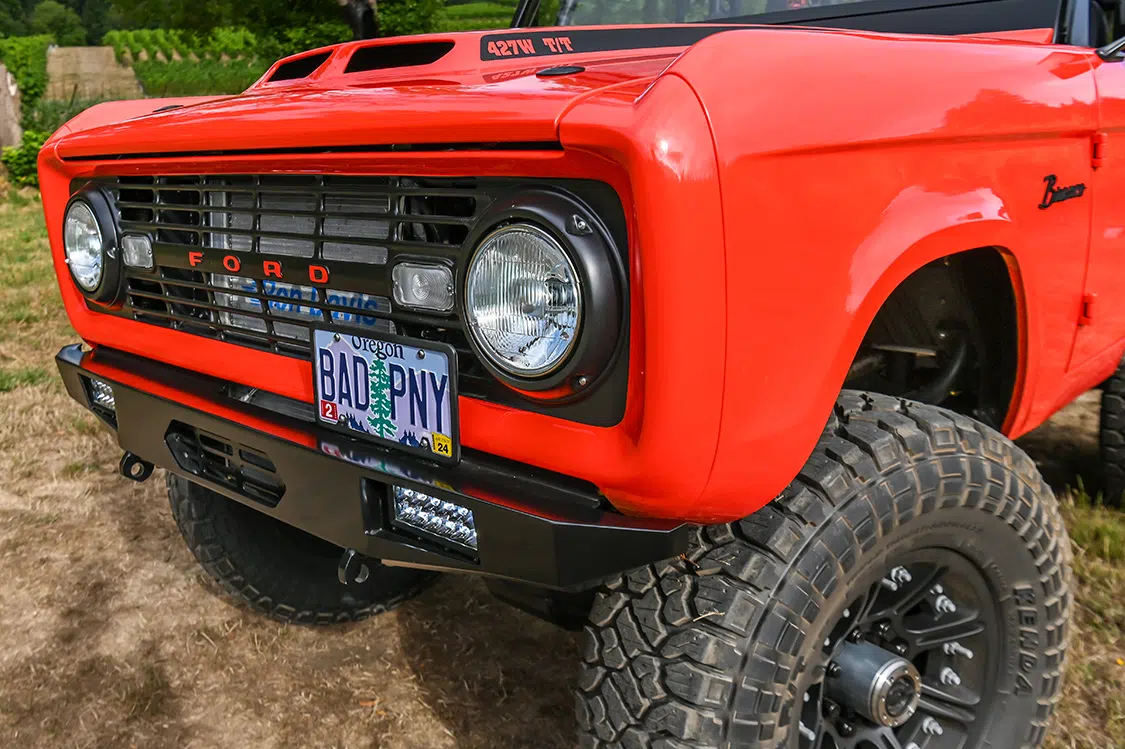 A Dennis Carpenter steel replacement body has been super customized to make everything work on this vehicle, but kept as stock looking as possible because the Barricklows “wanted to retain the un-cut look” of the classic Bronco.