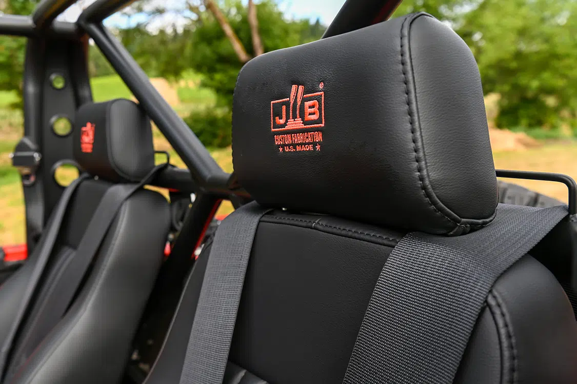 Speaking of the cage, the custom half-cab roll cage was designed and built by Jon and bolts to the frame at six-points. It is fully custom, and offers impressive safety and a super clean look. Keeping passengers inside the cage are five-point Simpson racing harnesses on custom Tom’s Off-Road deluxe high-back bucket seats.
