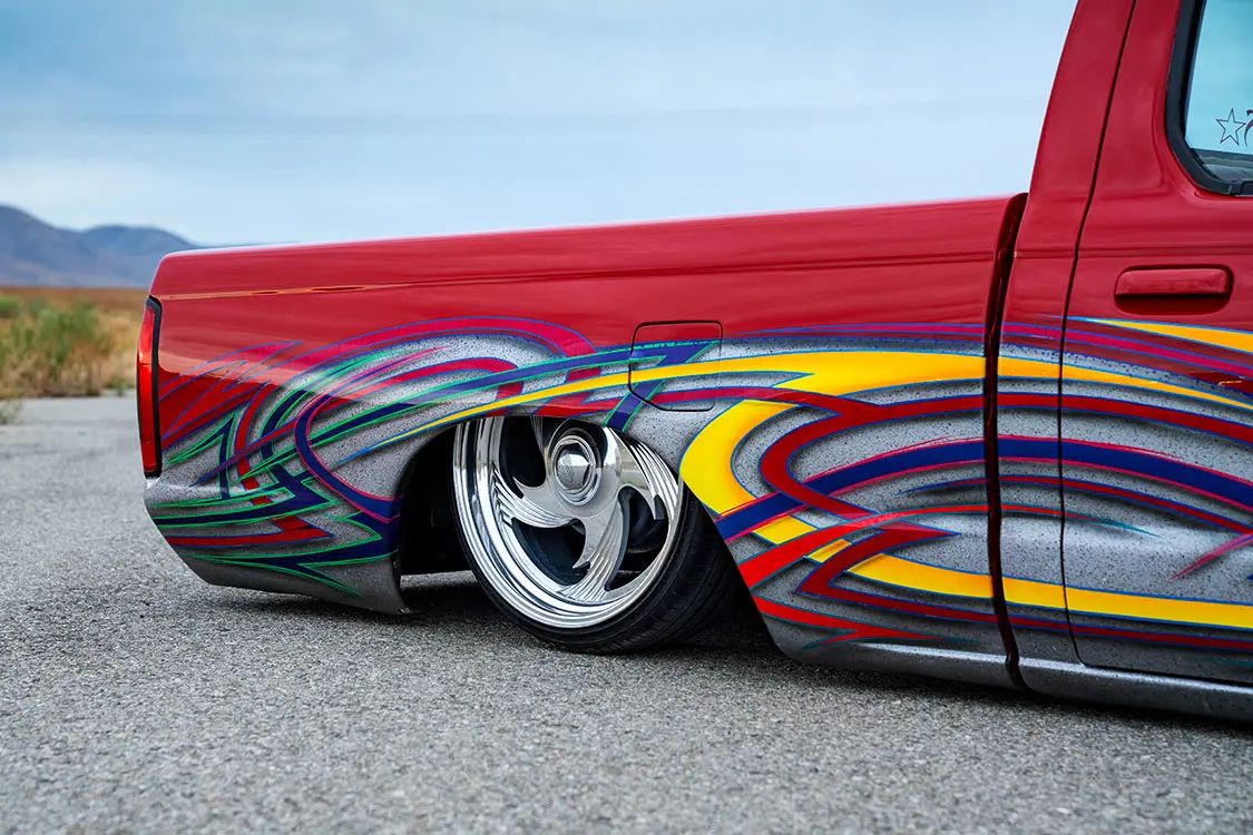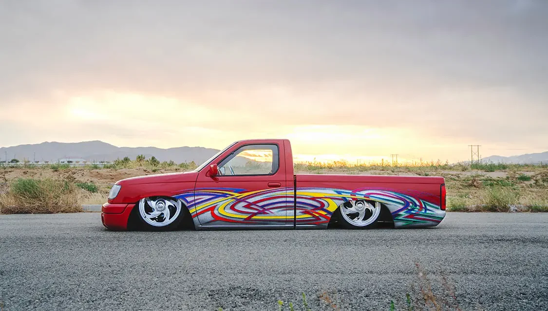 What we’re trying to say here is that mini-trucks have been a part of our collective lives for about six and a half decades now, and their influence in car culture can’t be denied. But, there’s one style of mini-truck in particular that turned the custom truck world upside down—the “Cali Style” mini-truck (we don’t call it that here in California, but we’re outnumbered, so it is what it is). Big wheels, laying frame (or body), and bright colors with insane graphics—we did that. Westsiiiiide!