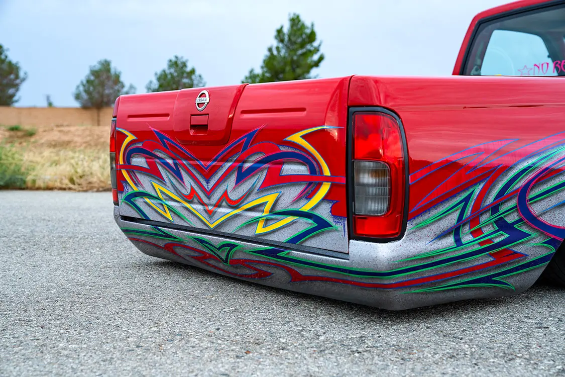 Add some fresh 20-inch Billet Specialties Phantom wheels and a completely custom interior stitched up by Ricky Shepard, topped off with a Colorado Custom Slater steering wheel, and Jordan’s Nissan was ready to hit the streets of Bako in finished form! As a member of the Bakersfield chapter of No Regrets, Jordan is in good company when it comes to keeping mini-truckin’ alive and well in Southern California!