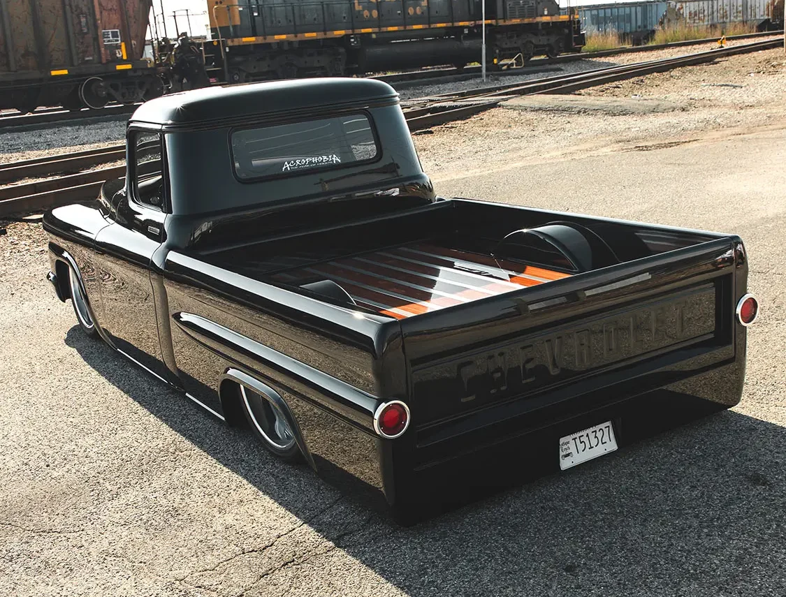 What changed the course of Cory’s build was an “elusive fleetside bed made only for ’58-’59 Apaches.” The bedsides with those groovy curves replaced the original step-sides, and Cory decided that the once-weekend cruiser was destined for greatness at shows across the Southeast.