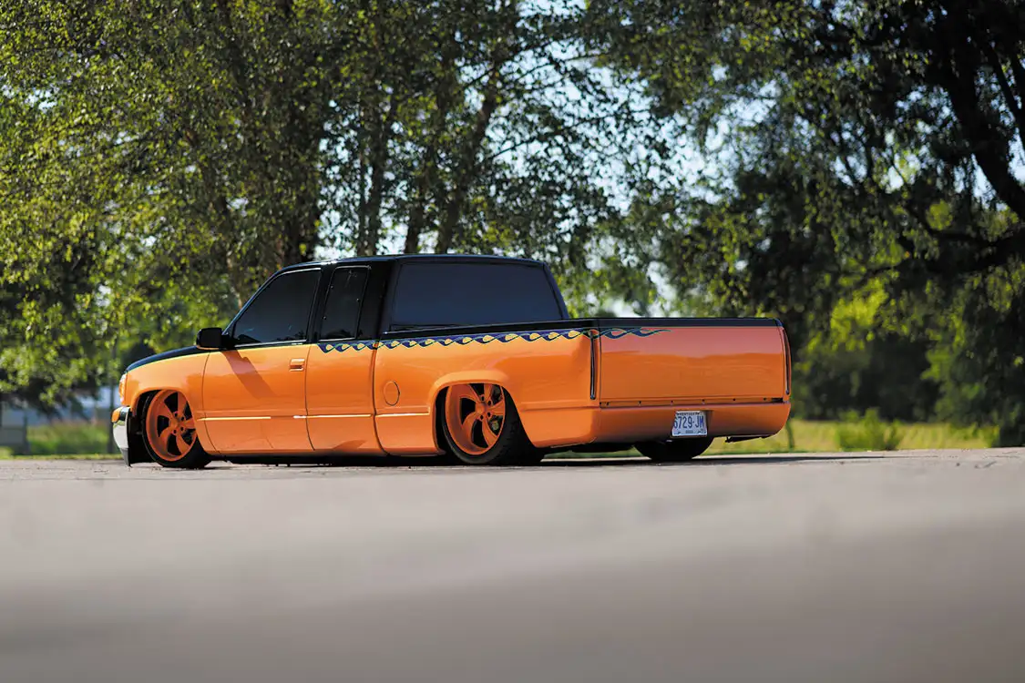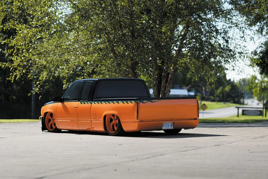 When it comes to custom trucks, Ben Jackson from Owensboro, Kentucky, knows how to turn heads. As an autobody refinishing technician, Ben’s got the skills and vision to create something truly unique. His 1996 Chevy Silverado, an awesome orange and black OBS, is a testament to his passion for cool pickups.