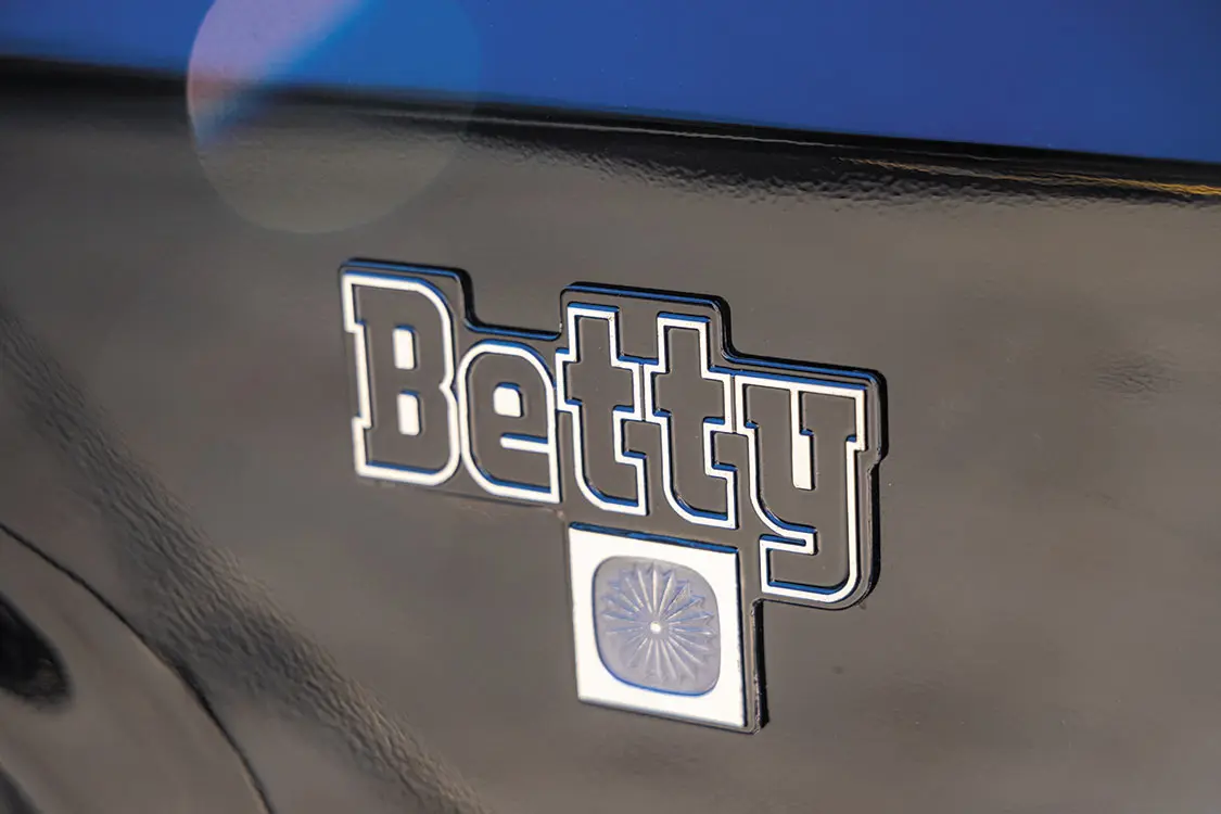 From the custom bench seat and door panels to the cowl hood and factory replacement bumpers, Betty was undergoing a stunning metamorphosis.
