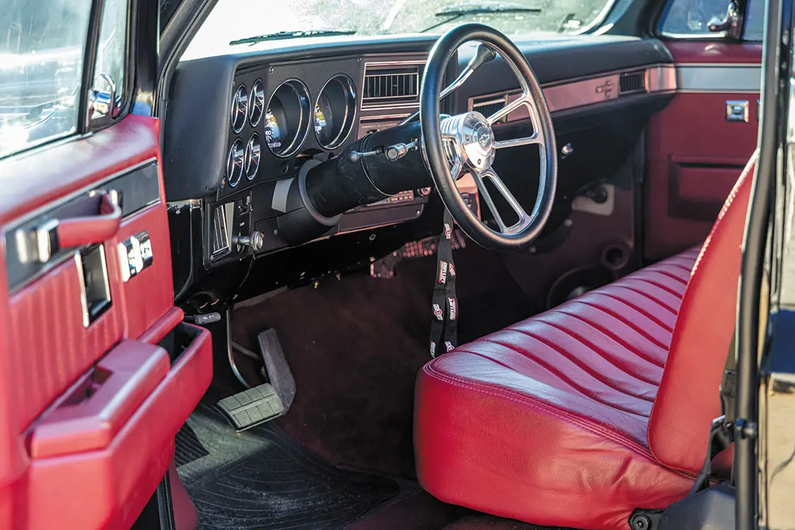 Betty’s transformation was a labor of love, with Evan sparing no effort to bring his vision to life. Collaborating with skilled craftsmen like Philip Cato of Cato’s Custom Upholstery and utilizing top-notch components from brands like Auto Metal Direct, Air Lift, and Edelbrock, Evan meticulously curated every detail of the build. From the custom bench seat and door panels to the cowl hood and factory replacement bumpers, Betty was undergoing a stunning metamorphosis.