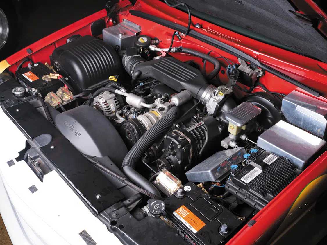 To add some additional comfort and utility to the rearend of the suspension system, Dean also included Belltech’s AirJack rear assist air bags with an onboard air compressor, which was definitely something revolutionary for that period. Air shocks had been utilized here and there, but having an integrated air source to adjust air pressure on the fly was definitely an up-and-coming trend that was starting to be explored more. This modification would allow the counteraction of a sagging rear end due to hauling a heavy cargo load or a group of ’90s high-waisted bikini babes a la the old Belltech magazine ads.