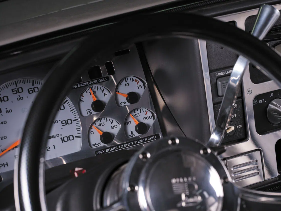 The same methodology was used inside the cab as well with the inclusion of a Billet Specialties’ steering wheel, column shifter, gauge and dash bezels, pedals and other accessories that were designed to take ’88-’98 trucks to elevated levels of customization.