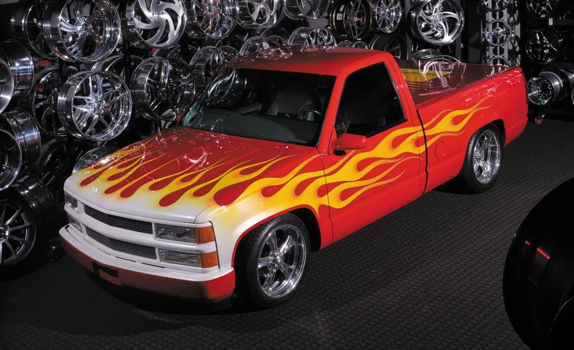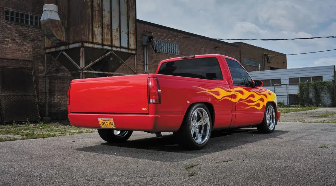 Since these trucks were being approached as modern day hot rods during that time, nothing less than a red-hot, traditional-style flame job would do.