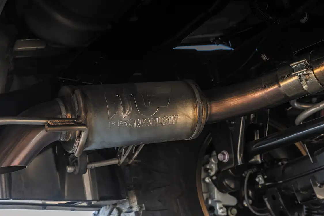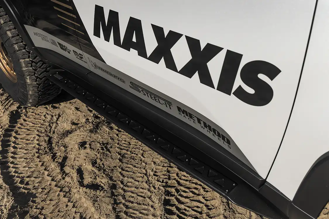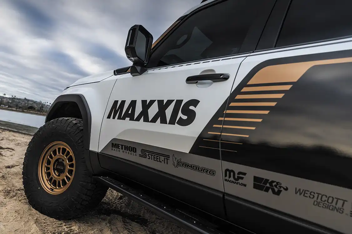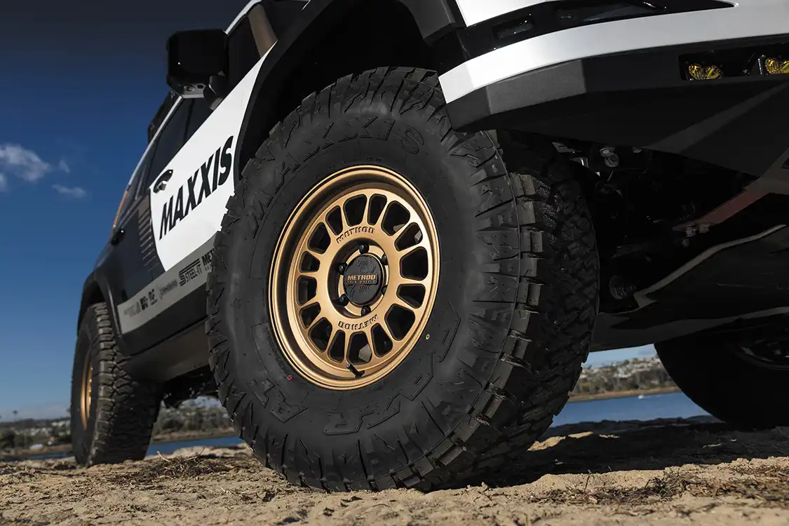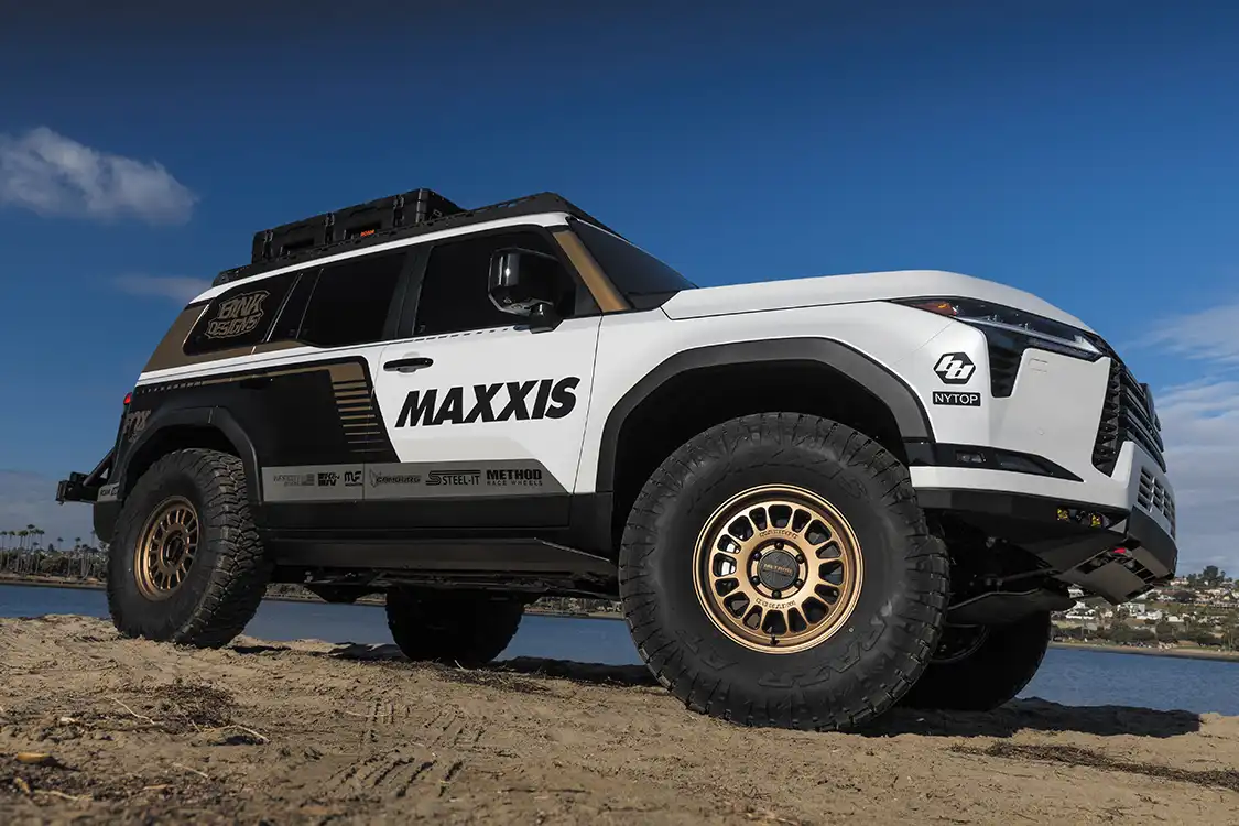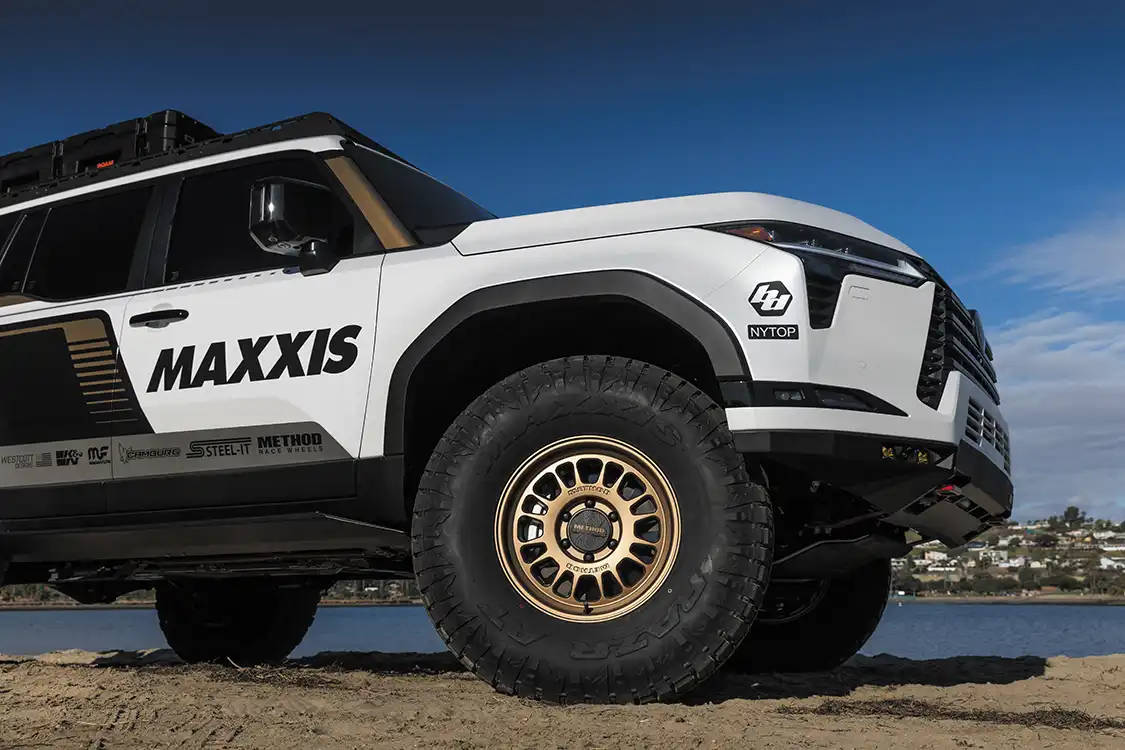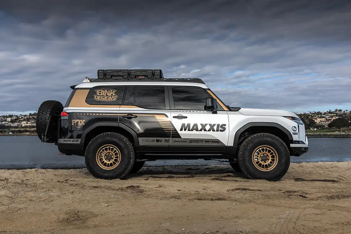 With the suspension sorted, it was time to choose wheels and tires. The GX550 now rolls on 37-inch Maxxis RAZR AT tires wrapped around 17×8.5 Method 318 wheels. This setup gives the truck the grip and durability needed for the toughest conditions, whether carving through deep sand or climbing steep rocky inclines. The aggressive tread pattern not only boosts traction but also adds to the overall aesthetic, which complements the rugged look of the build.